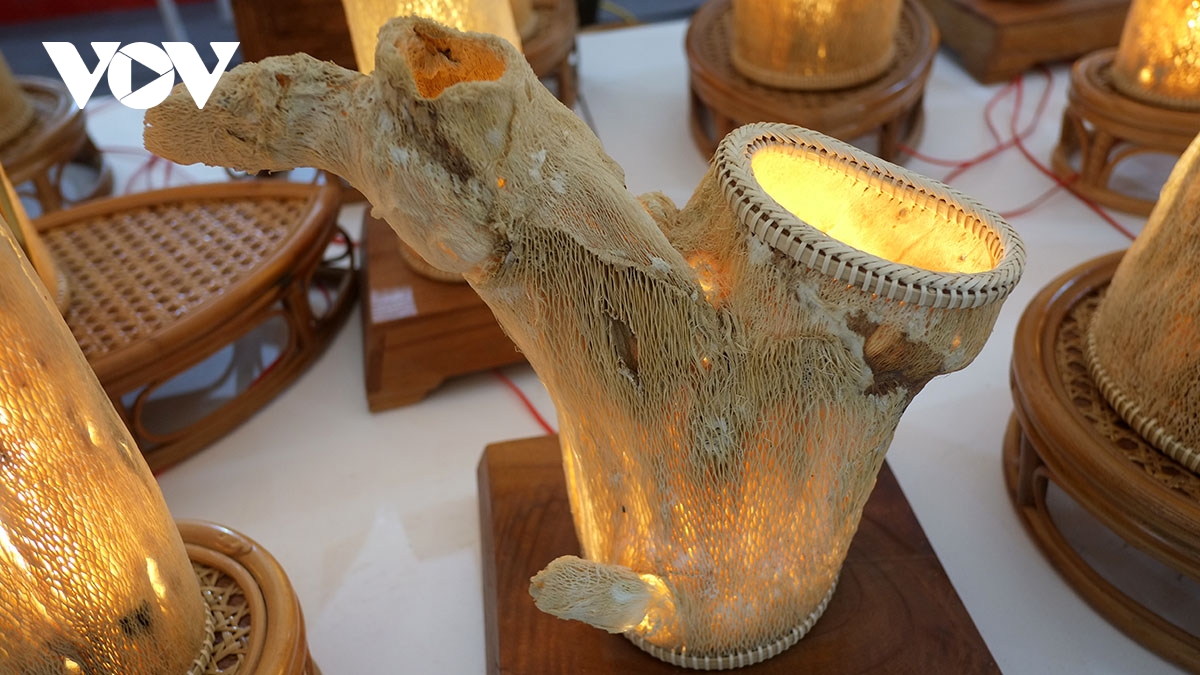 Sản phẩm đèn đu đủ được sáng tạo từ những thân cây đu đủ già, vốn không còn giá trị.