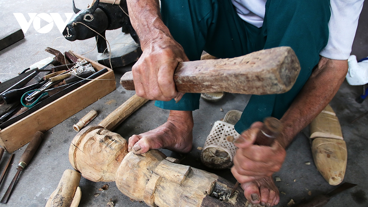 Ông Đặng Văn Phú (86 tuổi) đã có 37 năm gắn bó với việc chế tác rối gỗ chia sẻ: “Không chỉ thiếu khán giả, những người trẻ trong làng hiện nay cũng không mặn mà với nghề rối nước. Công việc vất vả, không ổn định và thu nhập không cao”.