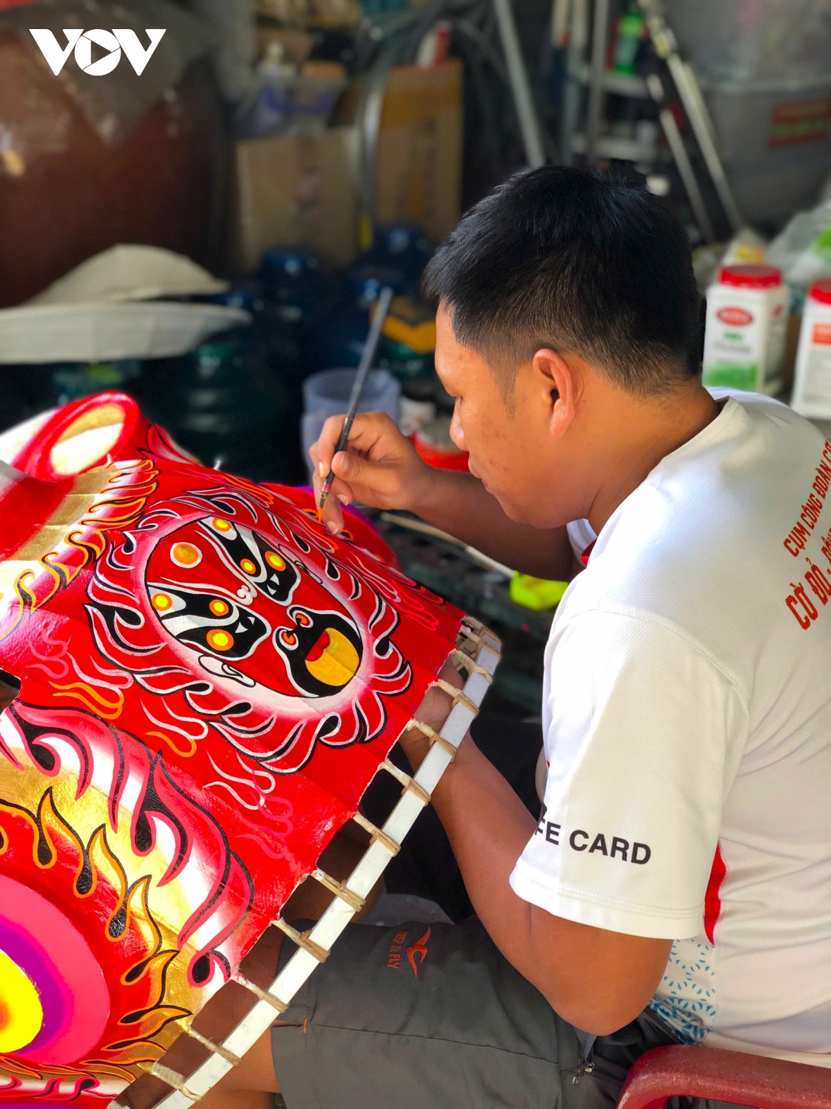 Khâu vẽ đầu lân là quan trọng nhất, thể hiện cái hồn của sản phẩm và đầu lân làm ra với biểu cảm hiền hay dữ.