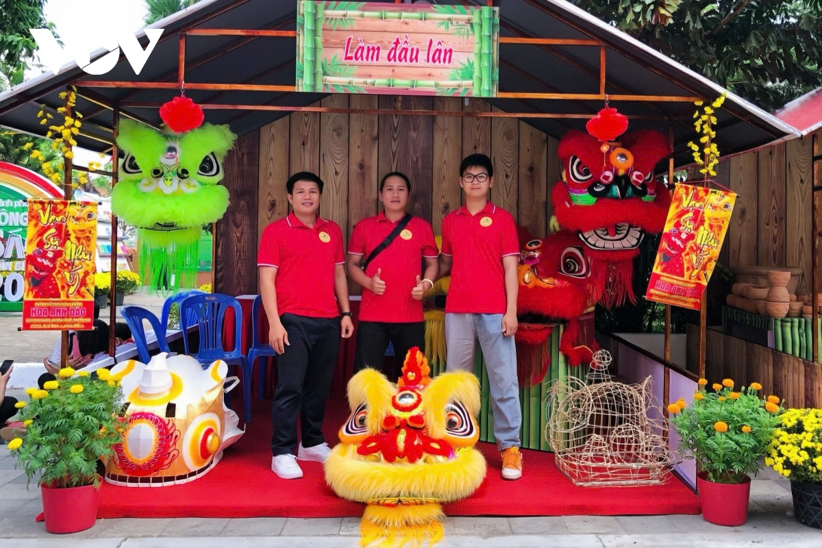 Cùng niềm đam mê chế tác, anh Nguyễn Văn Hải (xã Trung Hưng – TP. Cần Thơ) vào dịp Tết Nguyên đán Bính Ngọ 2026 cũng trình làng những chiếc đầu lân trang trí mặt nạ tuồng cổ đầy tính nghệ thuật hay hình chú mèo máy Đôrêmon dễ thương...