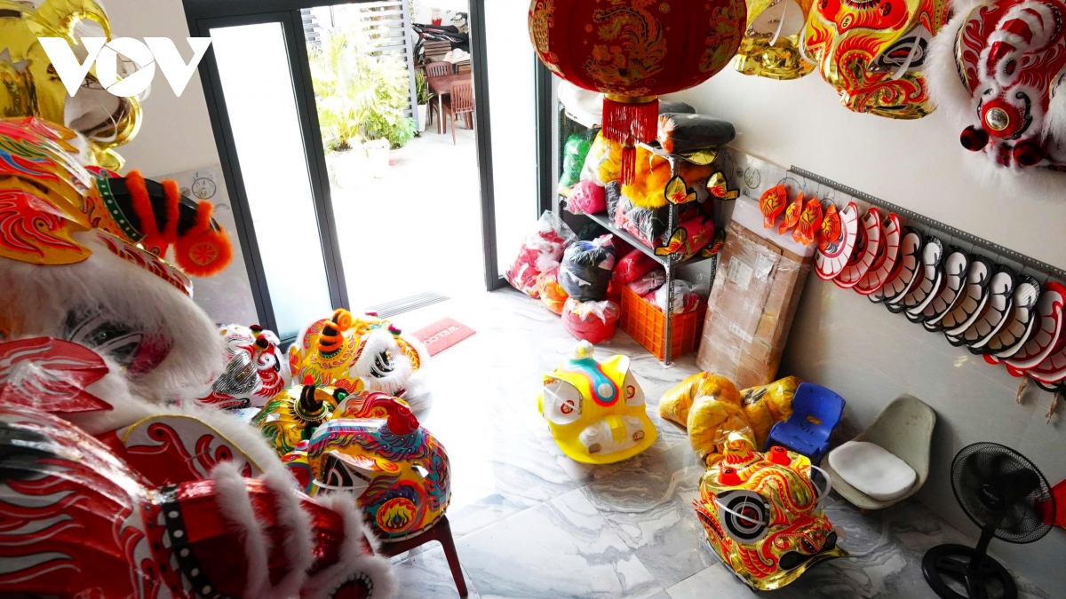 Căn nhà của anh Phạm Viết Lãm (phường Sóc Trăng) tràn ngập sản phẩm đầu lân được khách đặt hàng dịp cuối năm. Từ niềm yêu thích nghệ thuật múa lân, anh đã mày mò học hỏi và từng bước phát triển kỹ thuật chế tác đầu lân.