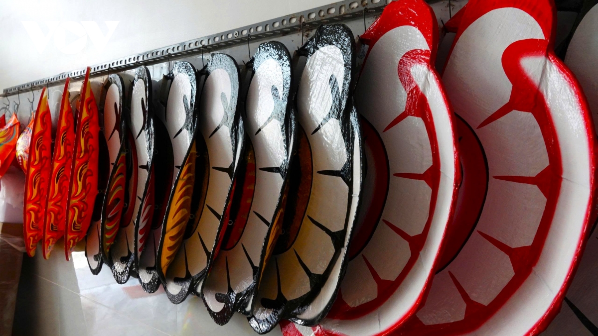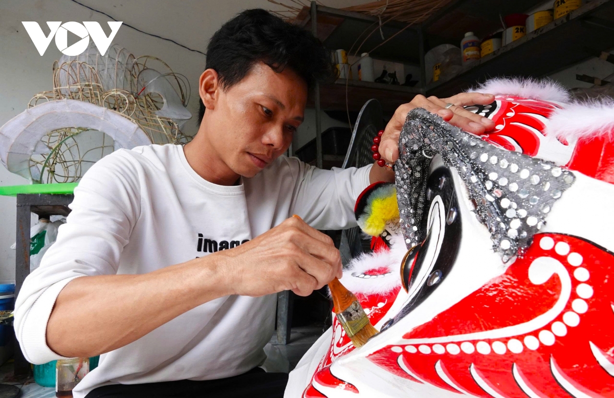 VOV.VN - Những chiếc đầu lân đủ hình, đủ kích thước, hoa văn bắt mắt có giá trị từ vài trăm đến hơn 10 triệu đồng được đôi tay khéo léo của anh Phạm Viết Lãm (phường Sóc Trăng) và anh Nguyễn Văn Hải (xã Trung Hưng) tạo nên mang đến cho khách hàng trong và ngoài nước sự mới mẻ, độc đáo.
