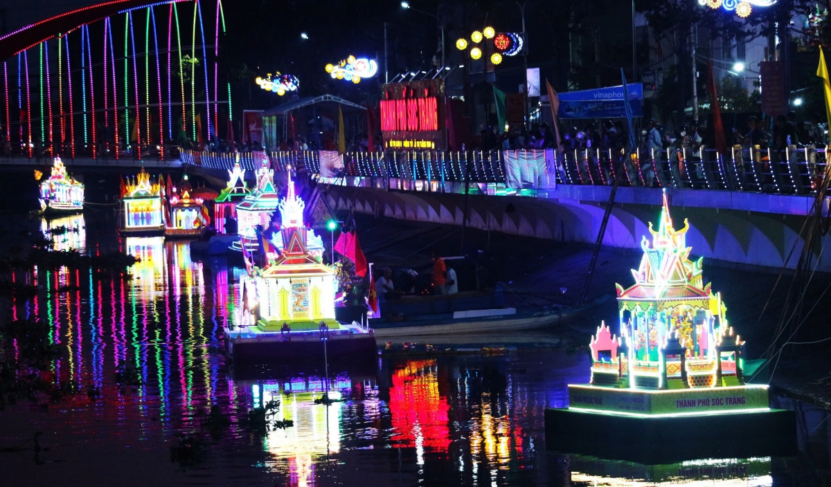 Chương trình trình diễn Thả Đèn nước (Lôiprotip) và ghe Cà Hâu sẽ diễn ra lúc 18h ngày 3/11/2025 trên sông Maspéro, phường Phú Lợi và phường Sóc Trăng. Dự kiến có 20 đến 30 Đèn nước (Lôiprotip) và có từ 4-6 ghe Cà Hâu của các chùa tham gia.