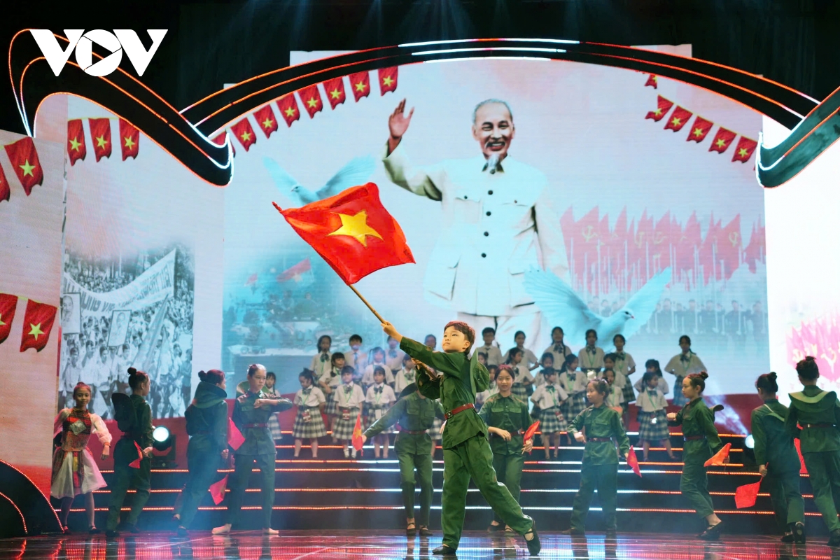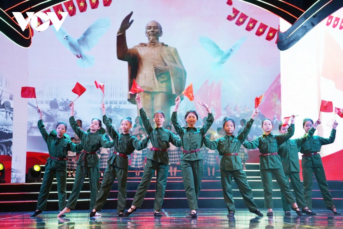 Điểm đặc biệt trong chương trình “Khúc ca khải hoàn” là tiết mục múa “Như có Bác trong ngày đại thắng” của các em thiếu nhi từ Câu lạc bộ Sao Tuổi Thơ.