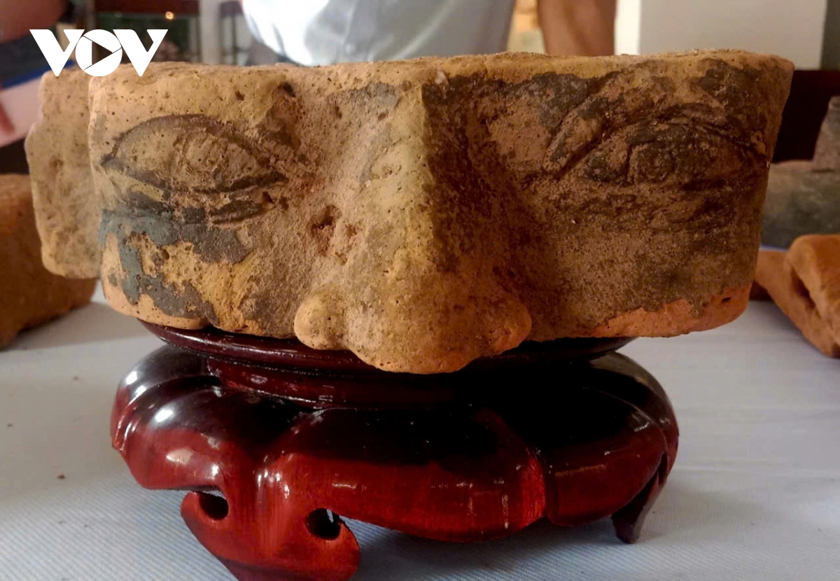 Viên gạch một phần mặt người được tìm thấy ở phế tích Phú Ân. (ảnh: Nguyễn Thảo)