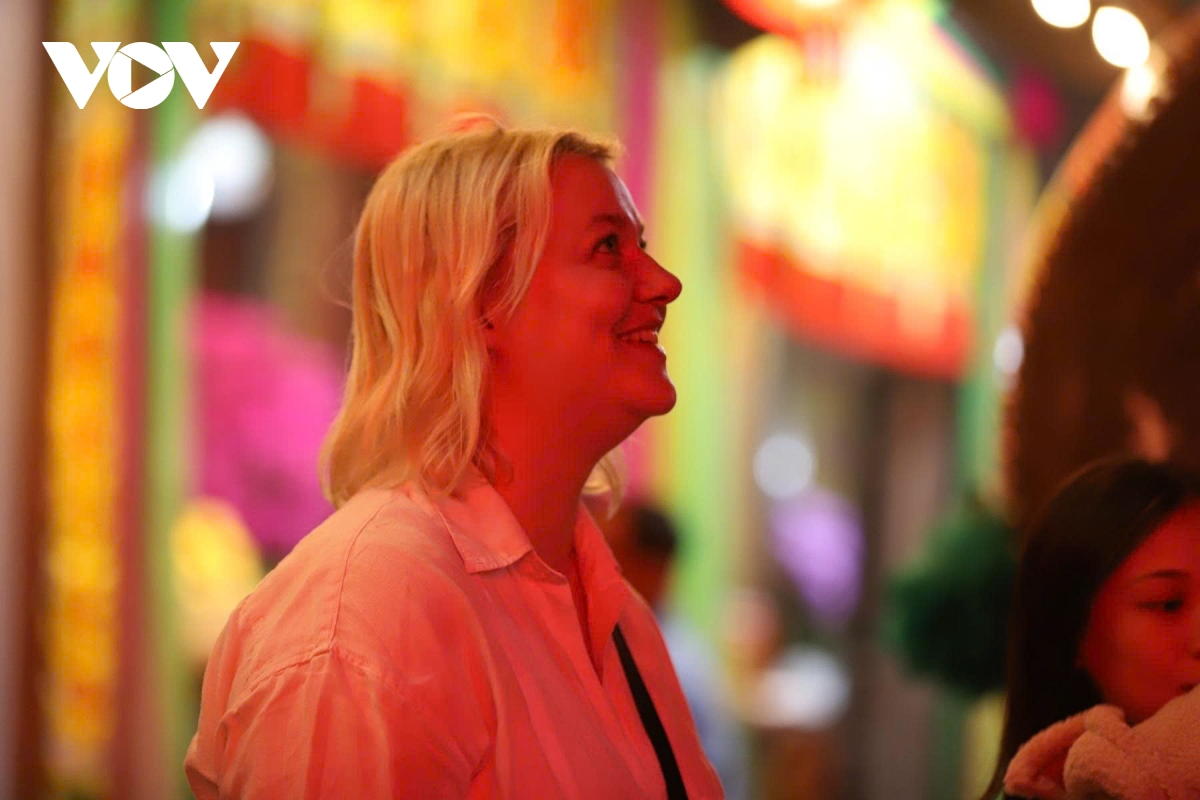 Du khách nước ngoài thích thú trải nghiệm không khí linh thiêng trong đêm chuyển giao năm mới.