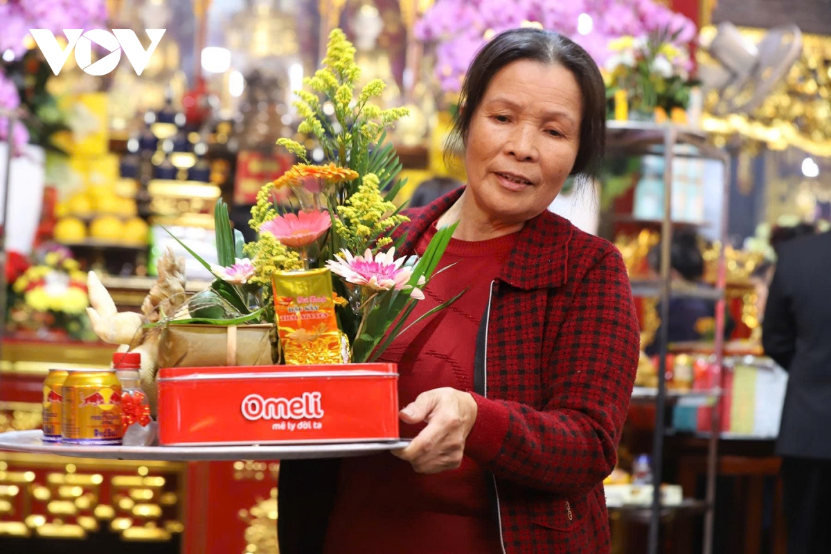 Ông Trần Lê Thái chia sẻ: “Sau mâm xôi, gà là đến hoa quả, các cụ xưa gọi là ‘đăng trà quả thực’. Ngoài ra còn có bánh kẹo, rượu, chè, thuốc… Tất cả đều thể hiện tấm lòng của con cháu dâng lên cửa Mẫu, mong một năm mới nhiều điều tốt lành, gia đình hạnh phúc, an khang”.