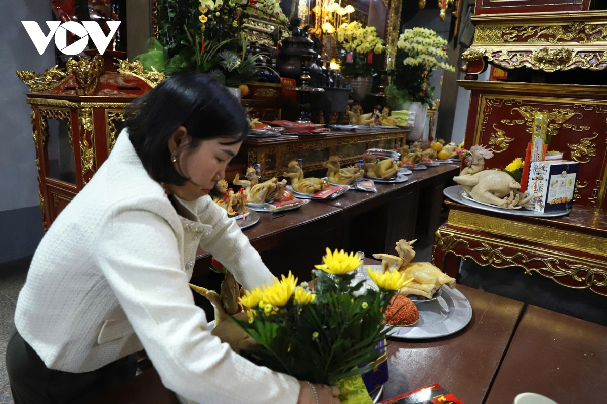 Ai cũng cẩn thận sửa soạn mâm lễ, chuẩn bị cho nghi thức dâng hương đầu năm.
