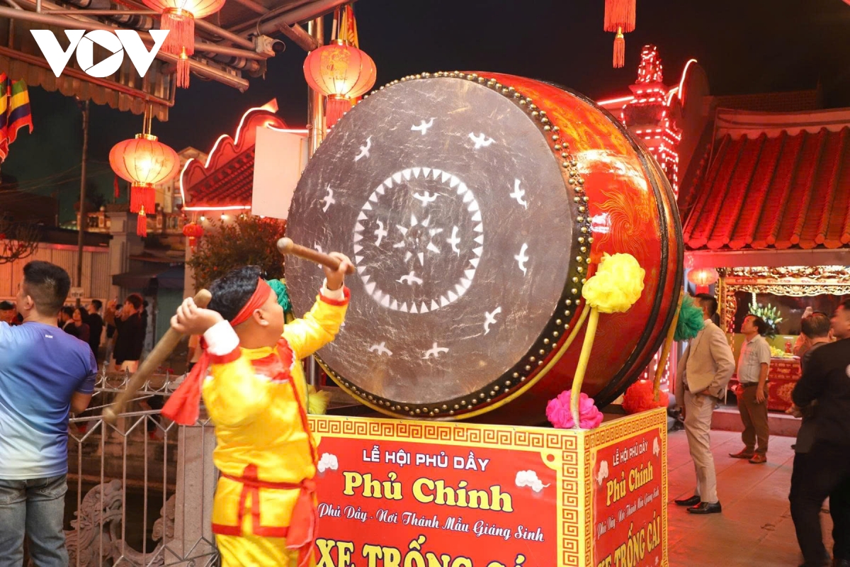 Tiếng trống hội điểm canh báo hiệu thời khắc năm mới, mở đầu cho nghi thức “xông cửa Mẫu”.