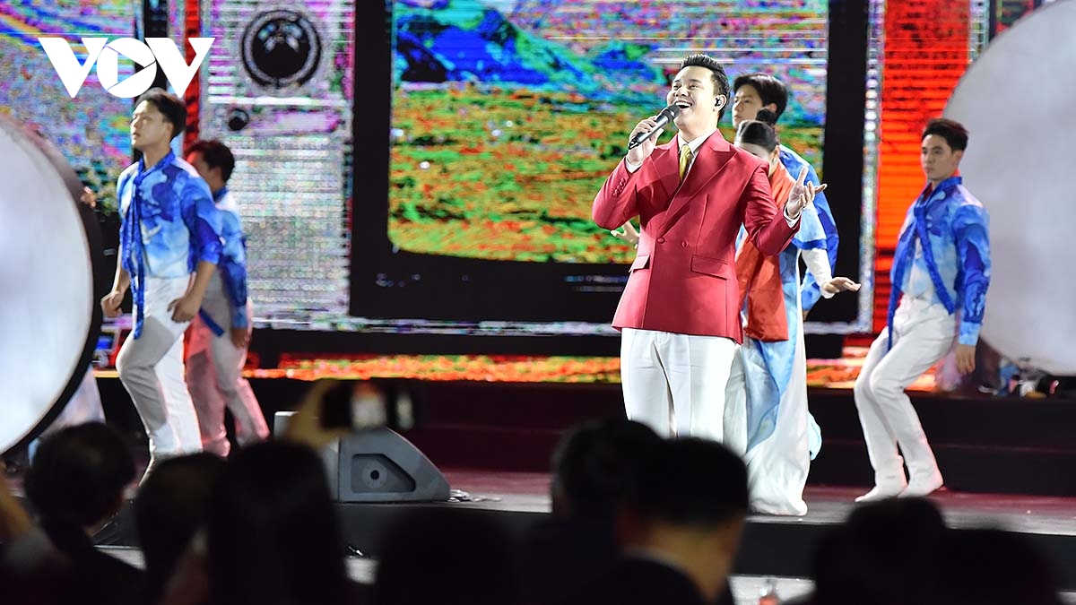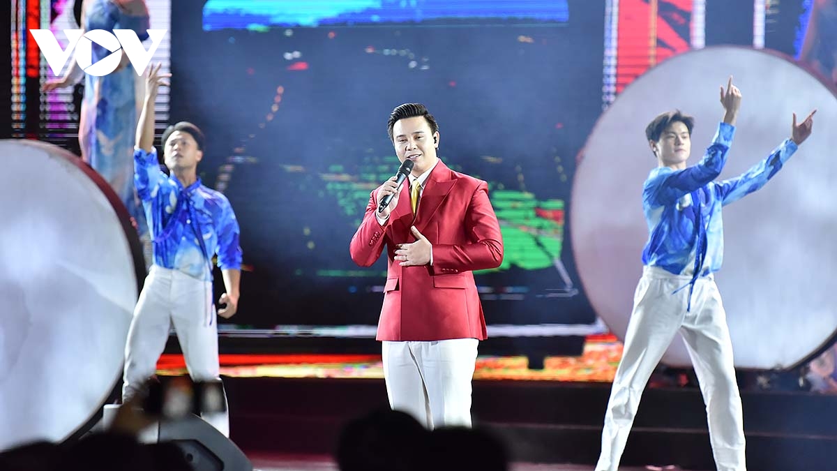 Ca khúc “Việt Nam ơi” do nhóm Nhóm Oplus, Vũ đoàn TA và Vũ đoàn PL thể hiện khép lại chương trình nghệ thuật đêm khai mạc Hội chợ Mùa Thu lần thứ nhất - 2025.
