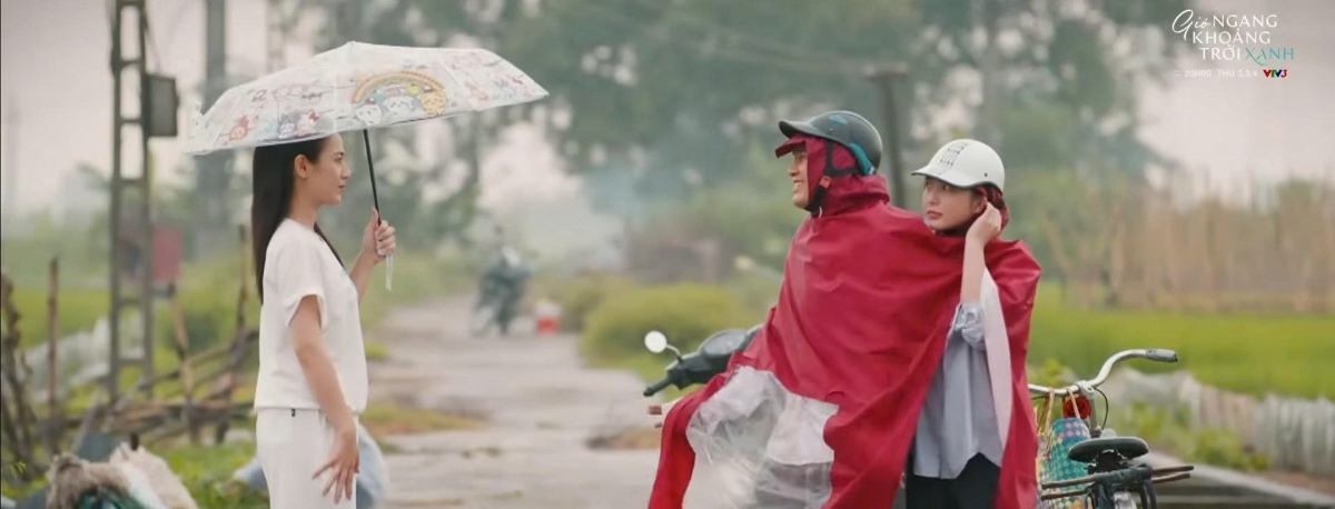 Ở một diễn biến khác của "Gió ngang khoảng trời xanh" tập 35, Ngân (Việt Hoa) đang đi bộ ở làng thì gặp lại Trí - anh chàng trước đây mẹ giới thiệu cho Ngân. Trí giờ đây đã lấy vợ. Hai vợ chồng Trí hết lời khen ngợi Ngân.