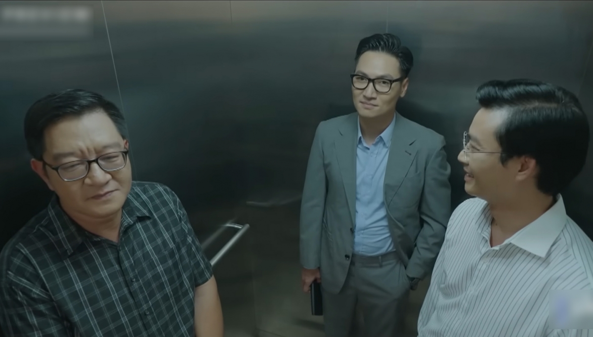 Bên trong thang máy, không khí nặng nề hơn cả. Triển vẫn giữ dáng vẻ điềm tĩnh xen chút kiêu ngạo, đáp lại Lê Chỉnh khi bị chạm tự ái bằng một lời phản đòn cứng rắn. Khắc ở giữa cố gắng xoa dịu, nhưng rõ ràng sự cạnh tranh giữa ba người không thể giấu dưới lớp lịch sự bên ngoài. Mỗi người đều mang trong mình một toan tính, và chiếc thang máy bỗng trở thành biểu tượng cho cuộc đua quyền lực khốc liệt – nơi ai cũng muốn đi lên, nhưng chỉ có một vị trí duy nhất chờ ở đỉnh.