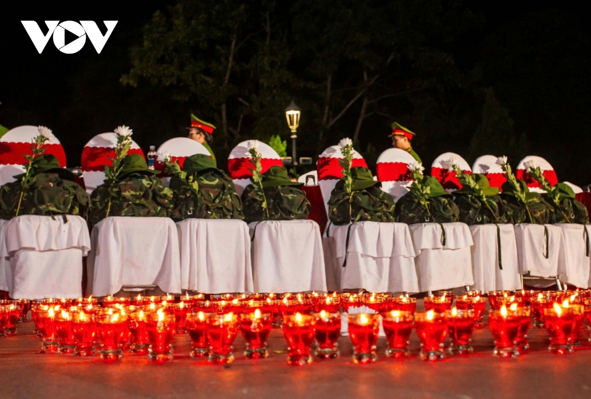 Phía dưới màn hình LED là những ngọn nến xếp thành số 81 tượng trưng cho 81 ngày đêm chiến đấu bảo vệ Thành Cổ Quảng Trị