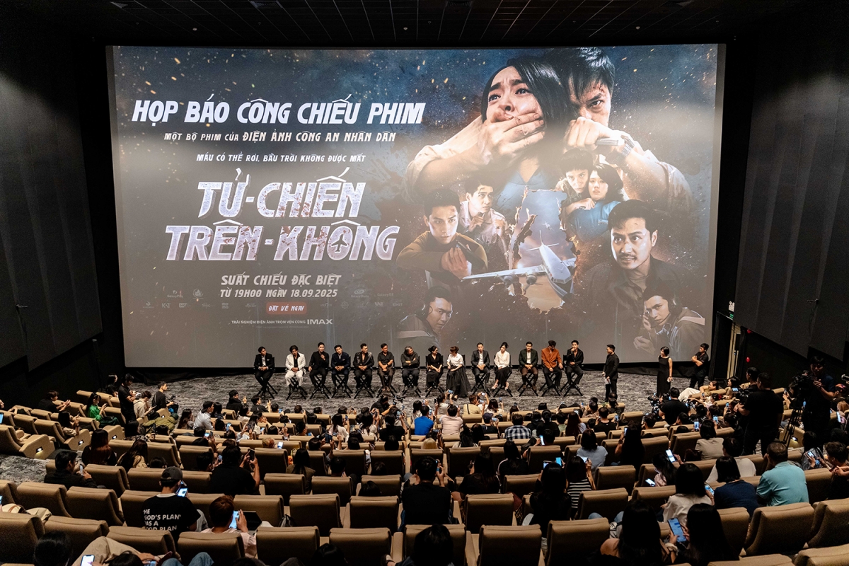 Tối 16/9, bom tấn hành động – kịch tính “Tử chiến trên không” có buổi công chiếu đầu tiên tại TP.HCM, đánh dấu lần đầu tiên một bộ phim hành động Việt ra mắt ở định dạng IMAX®. Sự kiện quy tụ đông đảo nghệ sĩ, đạo diễn, nhà sản xuất, cùng nhiều khách mời trong giới điện ảnh, truyền thông và giải trí. Đặc biệt, buổi ra mắt còn có sự góp mặt của cựu cơ trưởng Phạm Trung Nam và cựu tiếp viên hàng không Ngô Kim Thanh – những người từng ở trên chuyến bay định mệnh, là nhịp cầu kết nối giữa ký ức và điện ảnh.