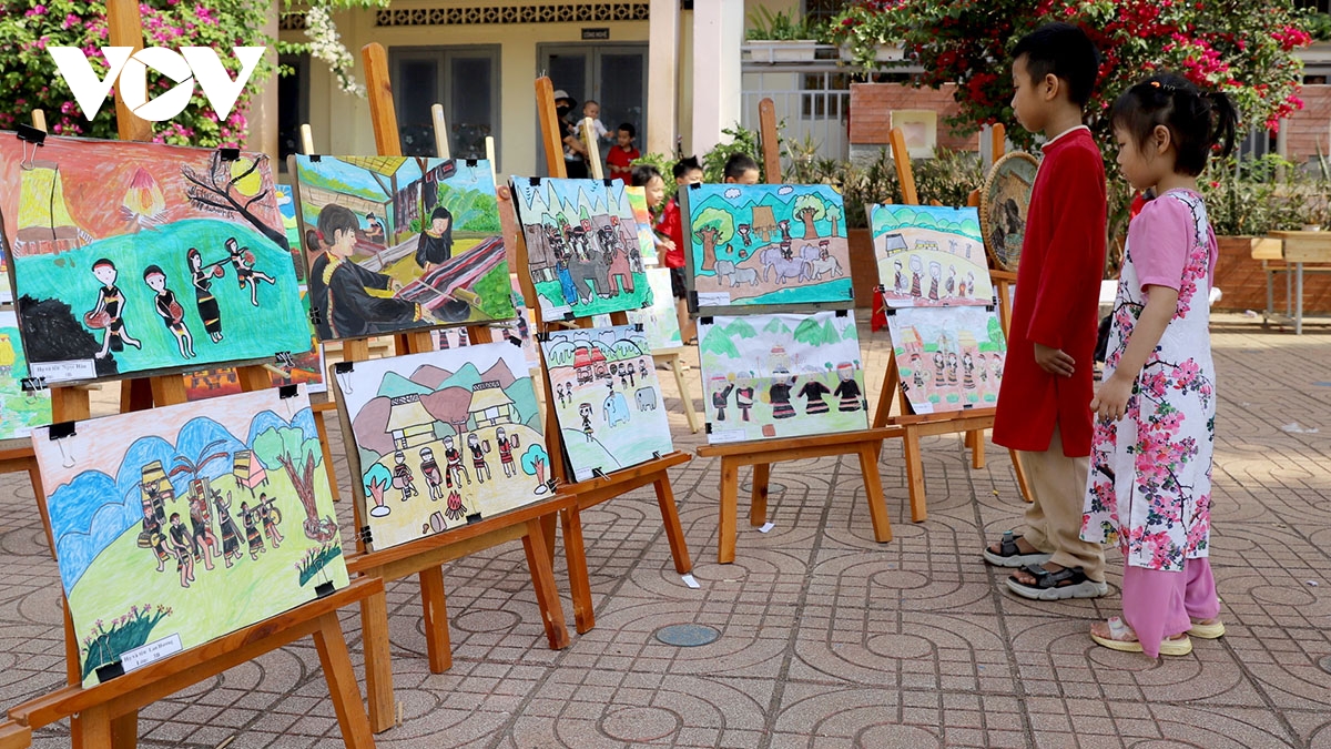 Những hình ảnh về văn hóa, đời sống, sinh hoạt của người Ê Đê được tái hiện qua ngòi bút của các "họa sĩ nhí" được trưng bày trong ngày hội