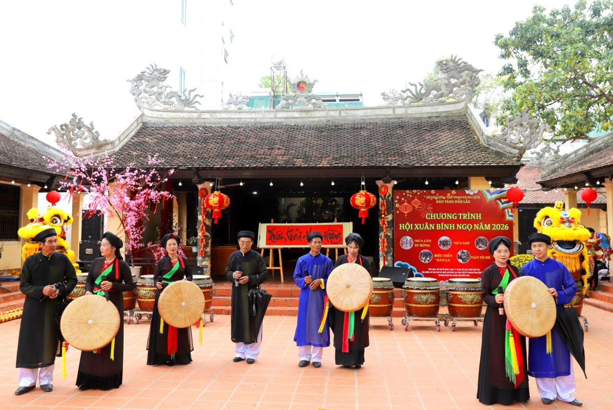 VOV.VN - Sáng nay (11/2), tại Di tích lịch sử quốc gia Đình Lạc Giao, phường Buôn Ma Thuột, tỉnh Đắk Lắk, Bảo tàng Đắk Lắk tổ chức chuỗi hoạt động chào Xuân Bính Ngọ năm 2026, thu hút đông đảo người dân và du khách tham dự.
