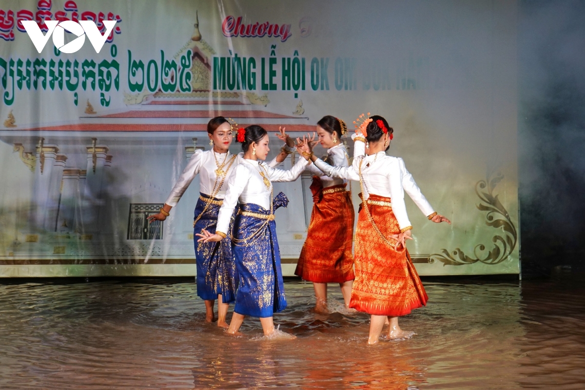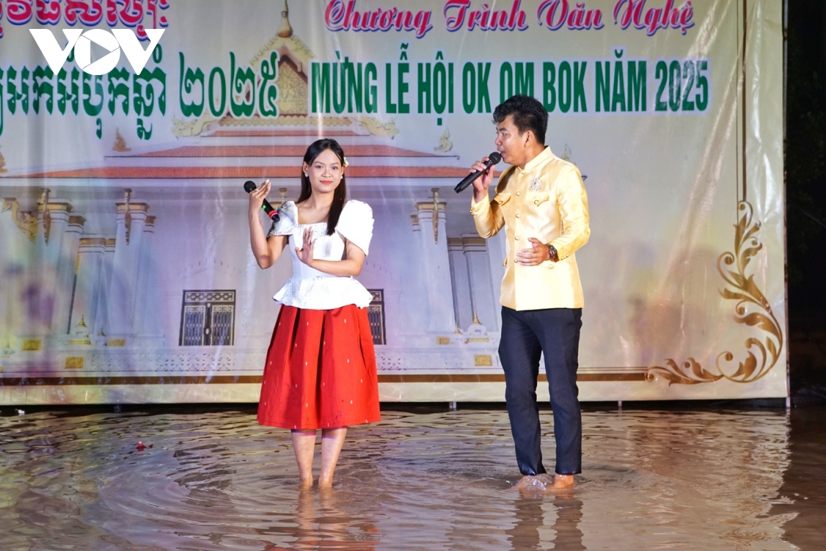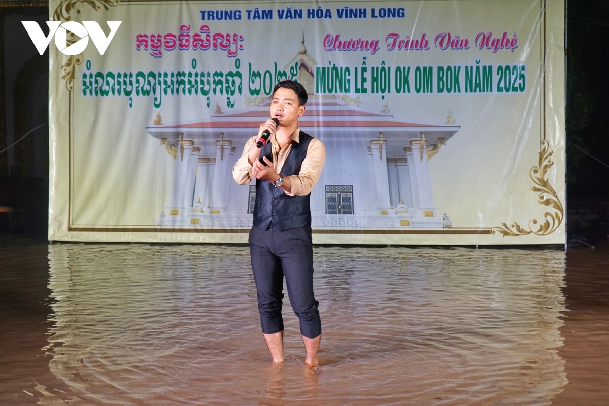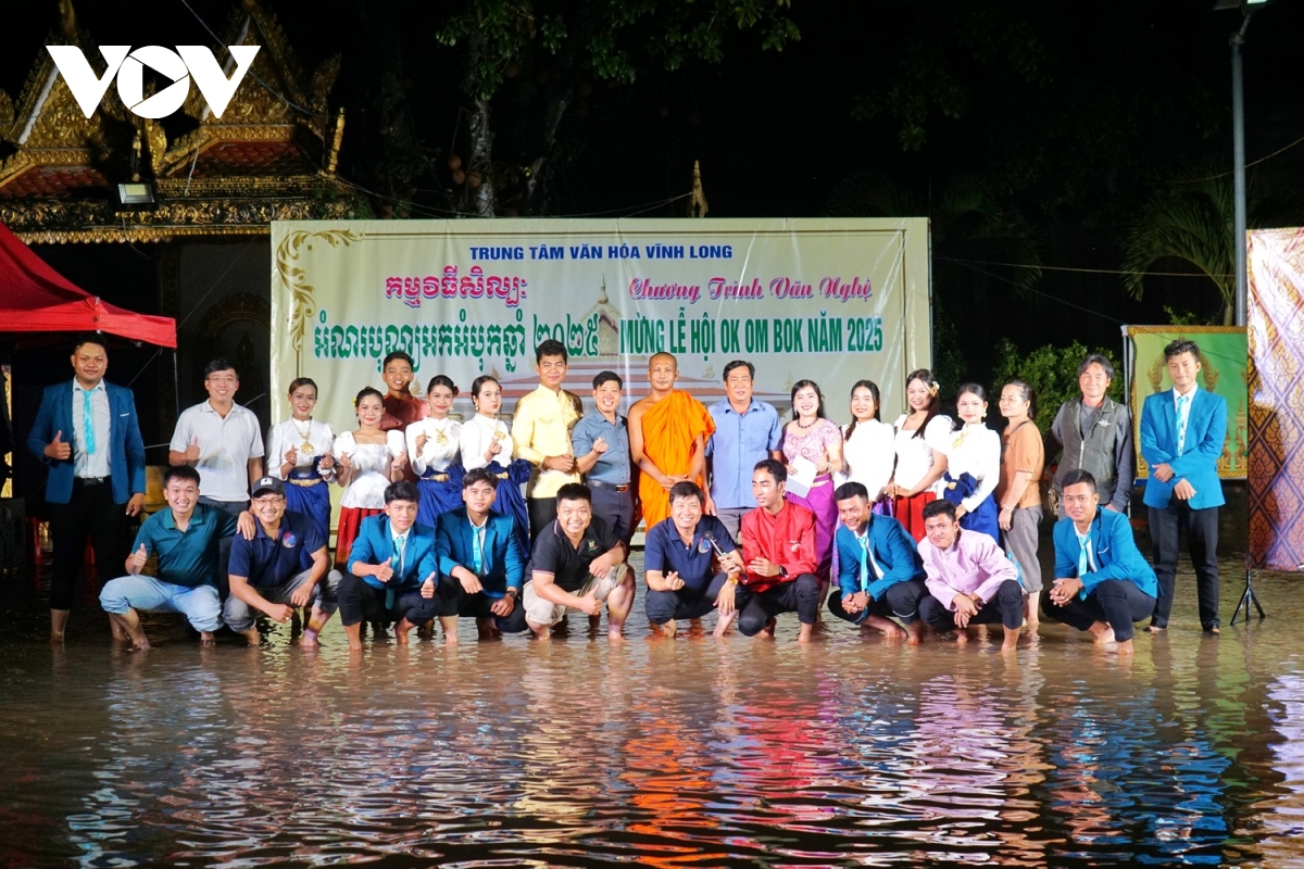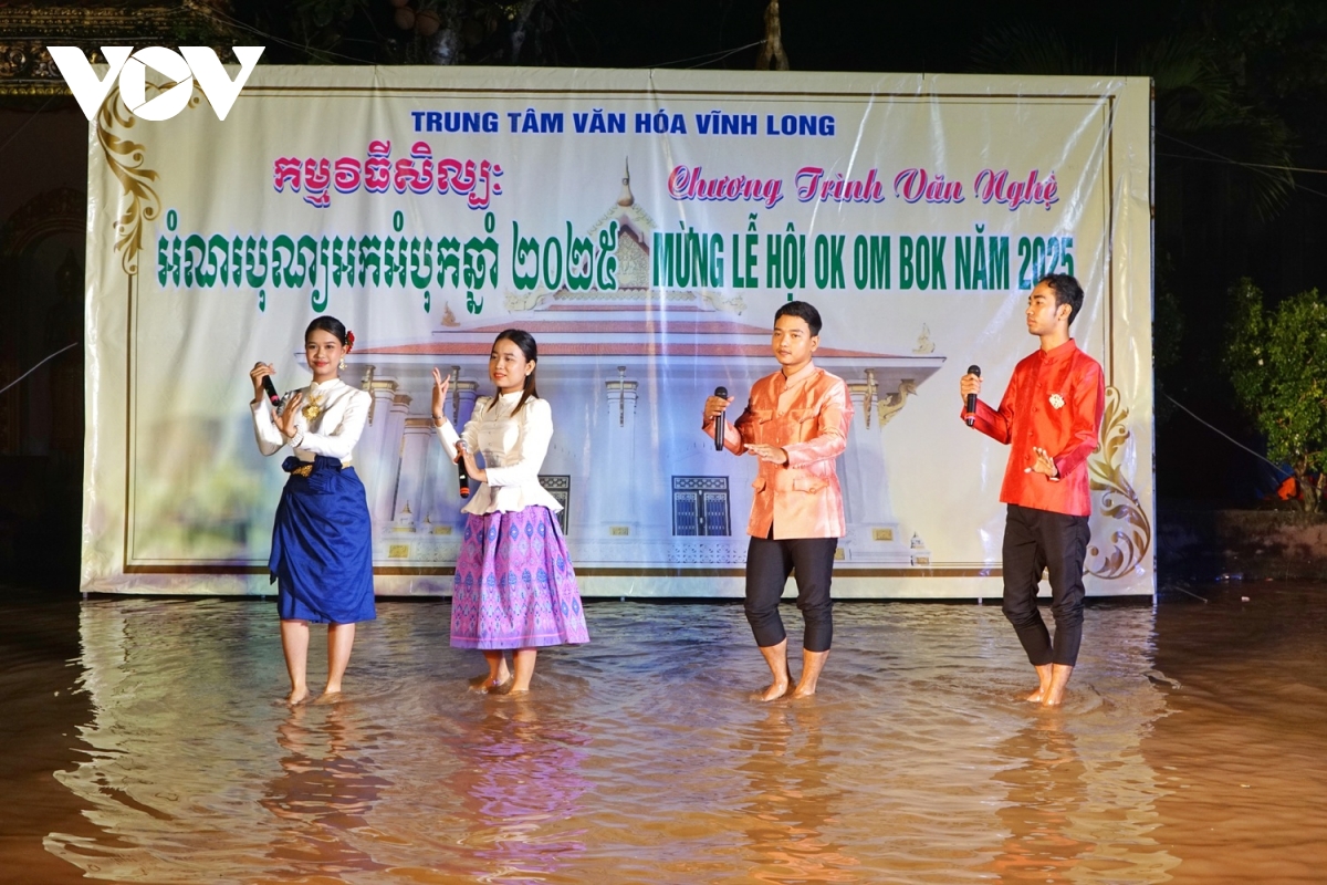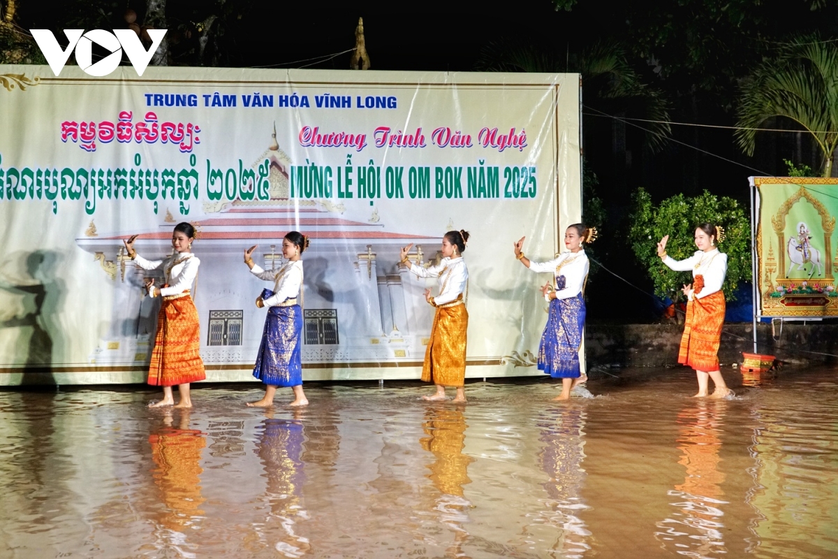 VOV.VN - Chào mừng Lễ hội Ok Om Bok đồng bào Khmer Nam bộ năm 2025, mấy ngày qua, Trung tâm văn hóa tỉnh Vĩnh Long tổ chức các đoàn đi biểu diễn văn nghệ phục vụ đồng bào Khmer tại các chùa Khmer trong tỉnh.
