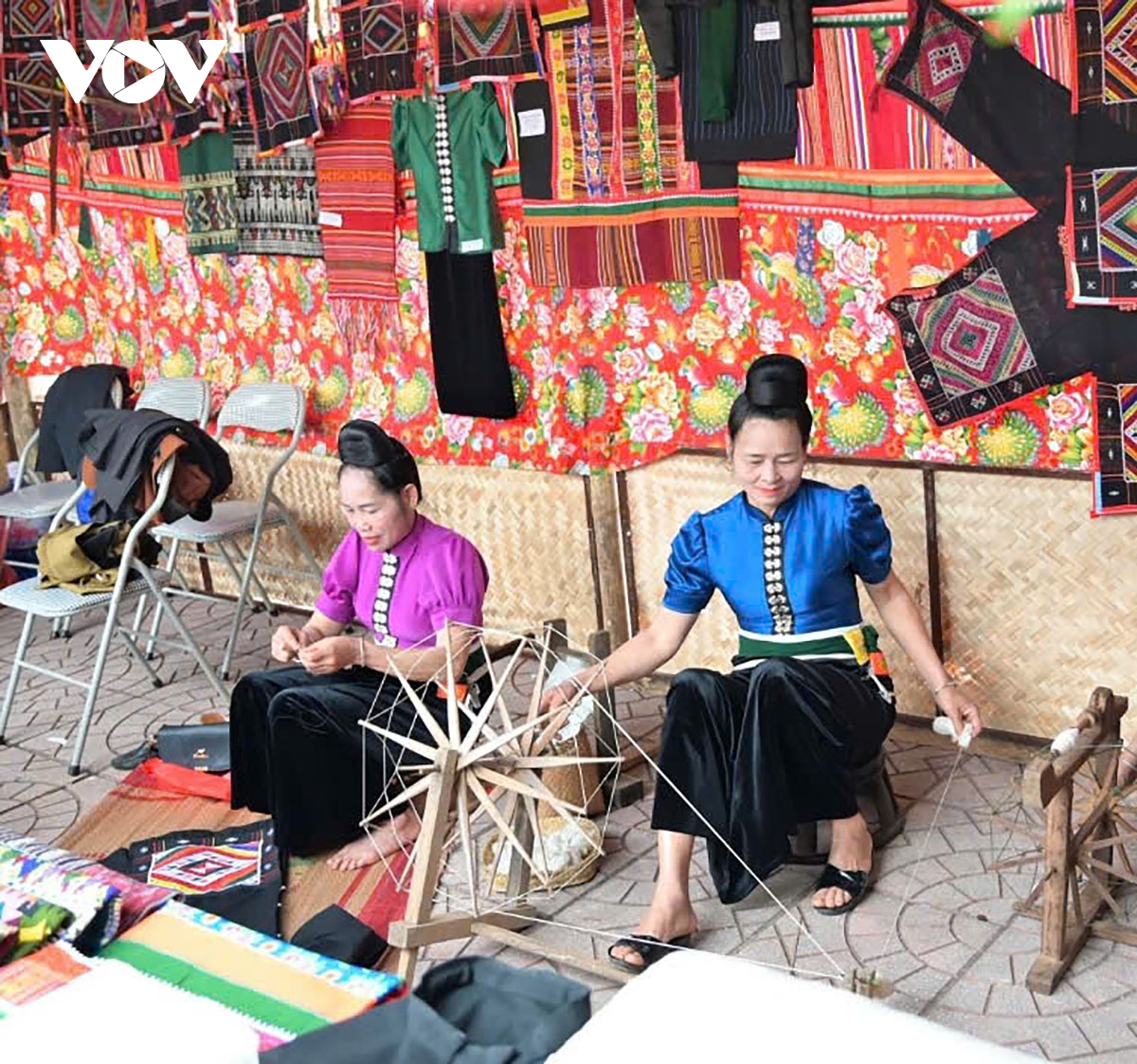 Trong khuôn khổ chương trình, cũng diễn ra phần trình diễn nghề dệt truyền thống và thêu thổ cẩm của phụ nữ dân tộc Thái.