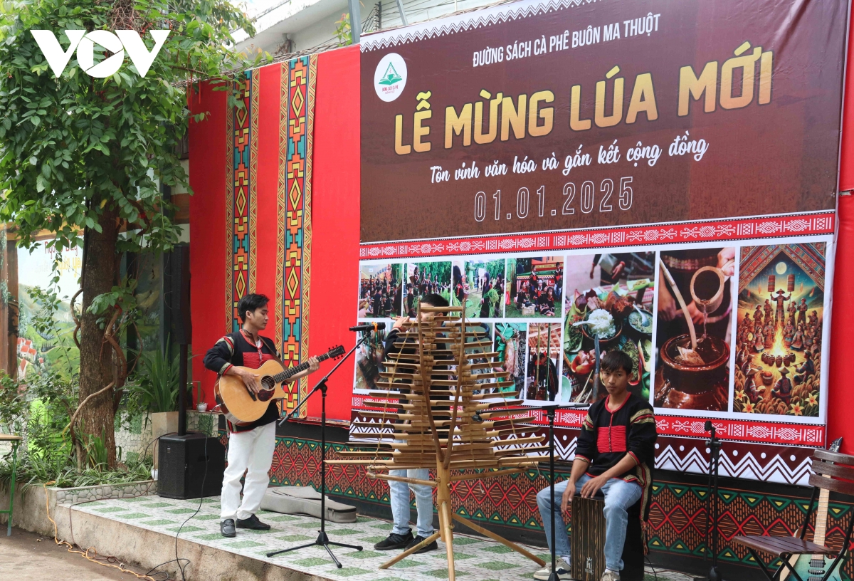 VOV.VN - Trong không khí hứng khởi chào đón năm mới 2025, ngay tại trung tâm thành phố Buôn Ma Thuột, tỉnh Đắk Lắk, nhiều người dân và du khách được hòa vào không gian Lễ mừng lúa mới của người Ê Đê trong tiếng chiêng rộn ràng.
