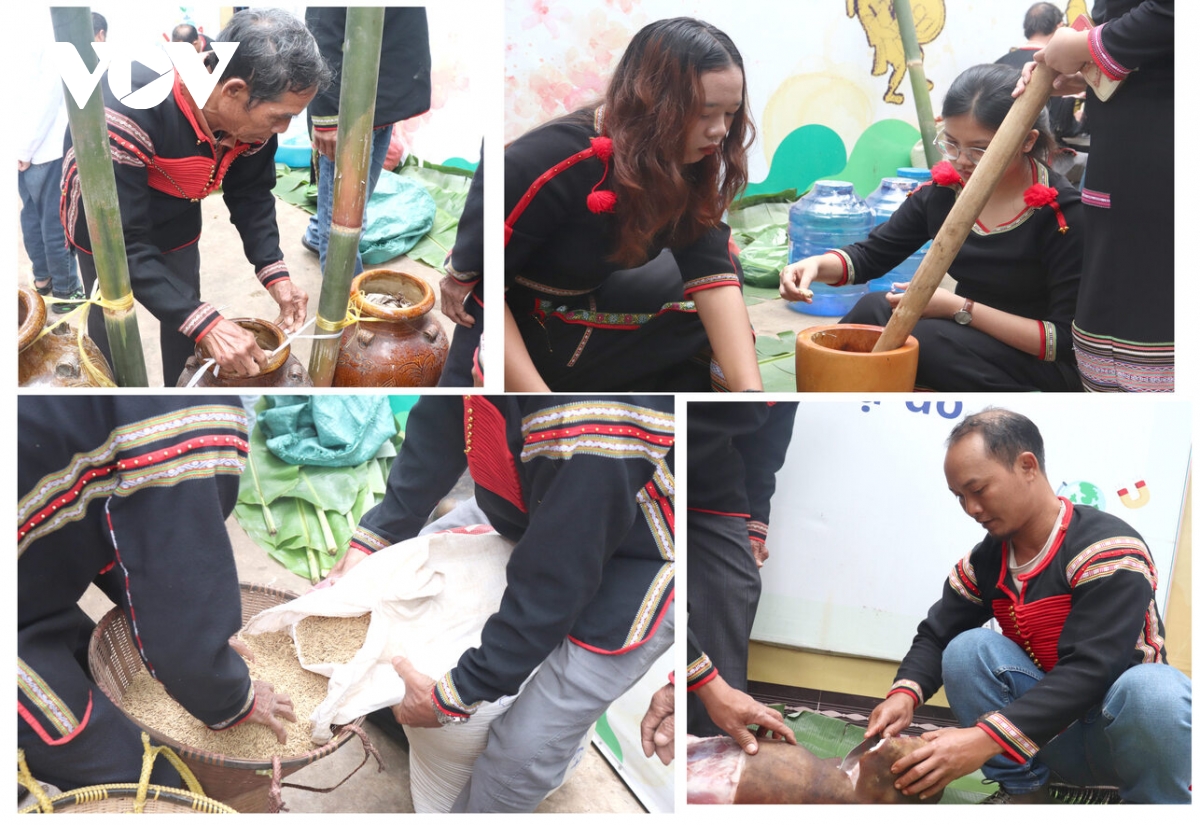 Tất cả già trẻ, nam nữ, mỗi người một việc, cùng nhau chuẩn bị lễ vật, nấu ăn, buộc rượu cần để làm lễ cúng.