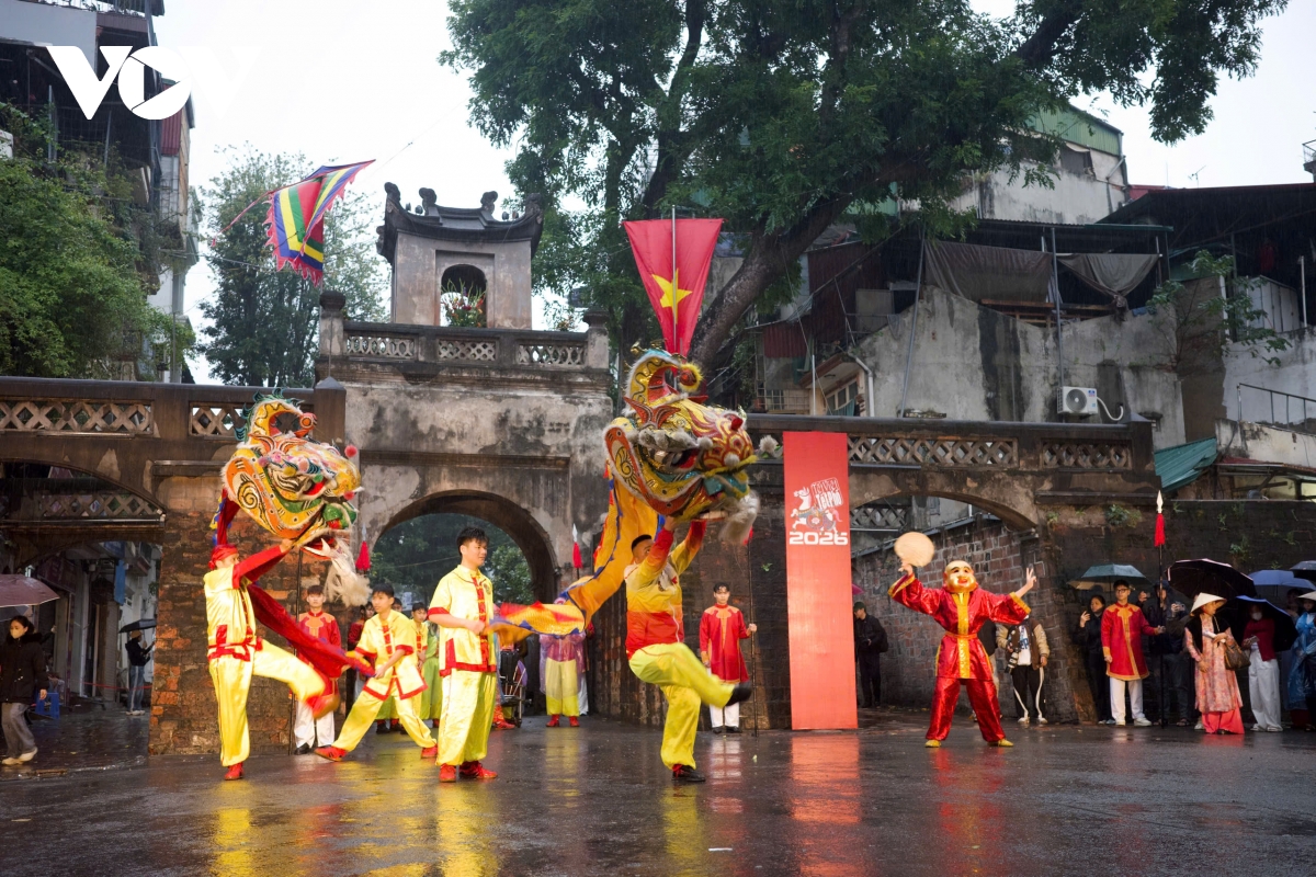 Tại đây, các nghi lễ truyền thống tiếp tục được thực hiện như Lễ Cáo Yết, Lễ dựng cây nêu cùng nhiều chương trình biểu diễn nghệ thuật dân gian như múa Bồng Triều Khúc, hát Xoan Phú Thọ, ca trù, múa sư tử, ngâm thơ… Những thanh âm dân gian hòa quyện cùng không gian di sản tạo nên bức tranh Tết đậm bản sắc văn hóa Hà Nội.