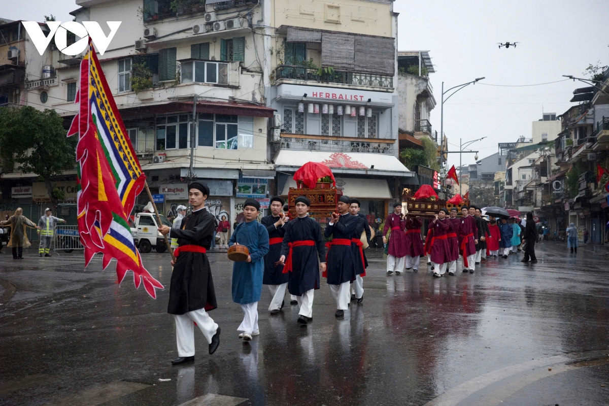 Hành trình kết nối di sản giữa lòng Thủ đô Từ Ô Quan Chưởng, đoàn rước di chuyển qua các tuyến phố Hàng Chiếu, Hàng Đường, Hàng Ngang, Hàng Đào, Quảng trường Đông Kinh Nghĩa Thục, khu vực phố đi bộ Hồ Hoàn Kiếm trước khi dừng tại Đình Kim Ngân (42 Hàng Bạc) - một trong những không gian sinh hoạt văn hóa tiêu biểu của khu phố cổ.