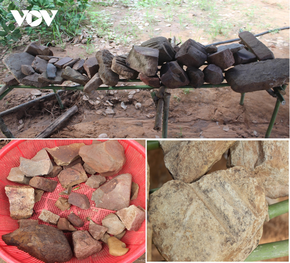 Bên cạnh những di vật được chế tác với trình độ cao, tại các hố khai quật còn phát hiện rất nhiều hiện vật có kích thước lớn như bàn mài, hòn ghè, hòn kê, bàn nghiền, rìu, bôn, đục, nhiều mảnh vỡ công cụ, dao đá…