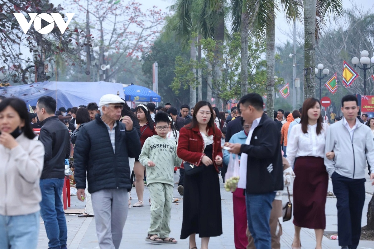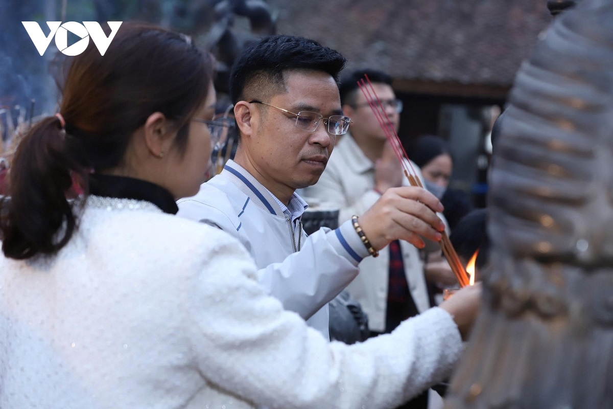 Từ sớm tinh mơ, khu vực nghi môn và sân đền đã đông kín du khách. Người dân thành kính sắp lễ, thắp nén nhang thơm tưởng nhớ công đức các vua Trần và các bậc tiền nhân. Nhiều gia đình đưa theo con nhỏ, vừa du xuân, vừa giáo dục truyền thống lịch sử, lòng tự hào dân tộc.