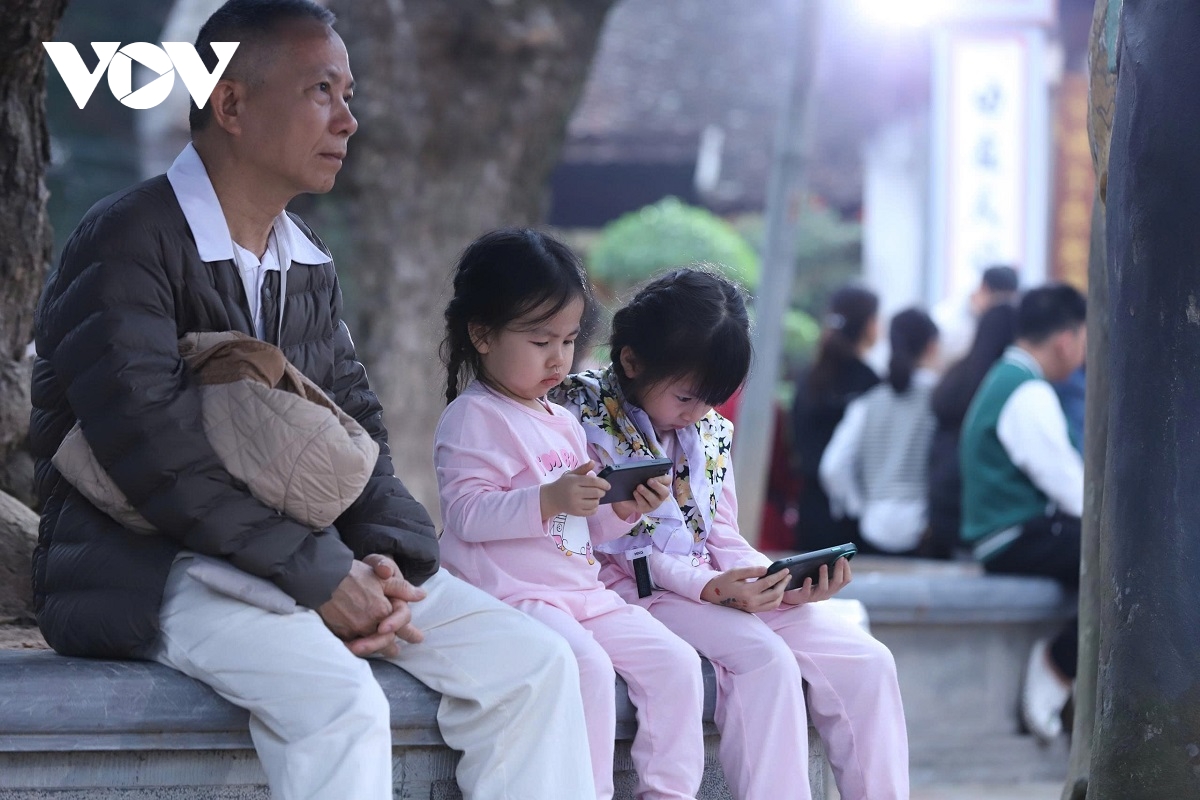 Hình ảnh nhiều thế hệ cùng về lễ tại Đền Trần trở thành nét đẹp đầu năm.