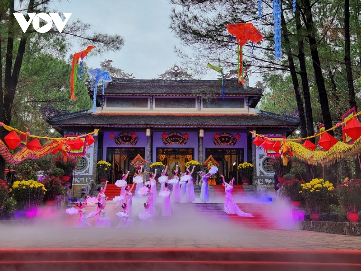 Sau nghi lễ và nghi thức đánh trống khai hội, người dân và du khách đã dâng hương tưởng niệm, tỏ lòng thành kính, tri ân Đức vua Phật hoàng Trần Nhân Tông và Công chúa Huyền Trân đã có công to lớn trong việc mở mang bờ cõi đất nước. Các hoạt động văn hóa, thể thao như múa lân sư rồng, biểu diễn võ cổ truyền, đẩy gậy, trình diễn thư pháp cũng được tổ chức tạo không khí vui tươi đầu năm.