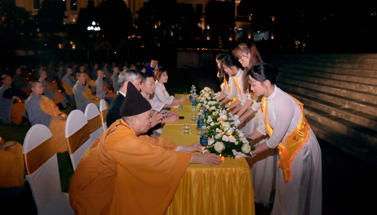 Tại chương trình, với sự tham gia của các tăng ni sinh hành giả an cư thuộc các khối lớp Học viện Phật giáo Việt Nam tại Hà Nội và hàng trăm Phật tử đã cùng niệm Phật cầu gia hộ, nhập từ bi quán; dâng hoa cúng dàng; thực hiện nghi lễ cầu siêu, nhiễu đàn niệm Phật.