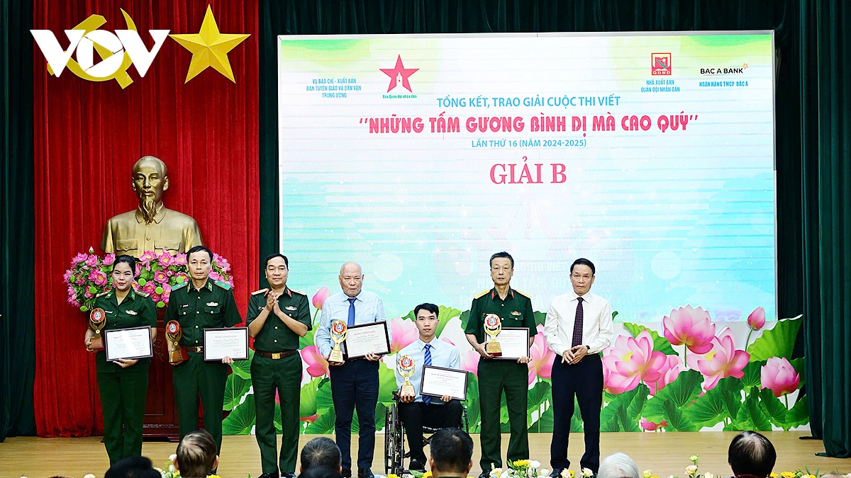VOV.VN - Cuộc thi viết “Những tấm gương bình dị mà cao quý” lần thứ 16 (năm 2024-2025) do Báo Quân đội nhân dân (QĐND), Vụ Báo chí-Xuất bản, Ban Tuyên giáo và Dân vận Trung ương và các đối tác phối hợp tổ chức đã khép lại với 3 giải A; 3 giải B; 4 giải C và 12 giải Khuyến khích.