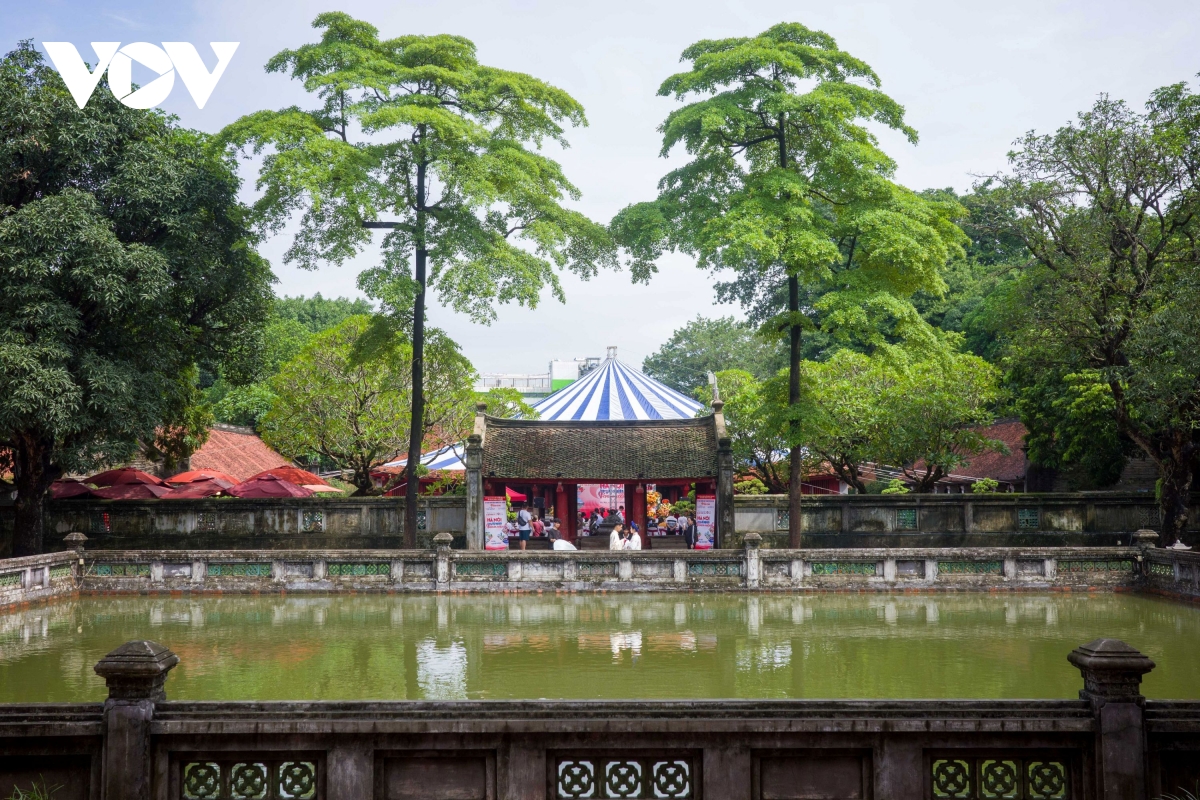 Toàn cảnh khu trưng bày tại Văn Miếu – Quốc Tử Giám sáng 8/10/2025, nơi diễn ra Triển lãm “Hà Nội trong tôi” 2025 – điểm hẹn văn hóa mỗi mùa Thu Hà Nội.