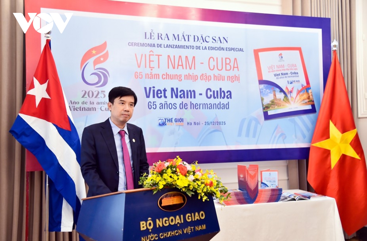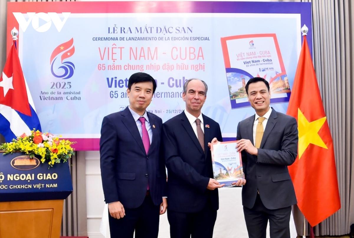 VOV.VN - Ngày 25/12, Báo Thế giới và Việt Nam, Cơ quan truyền thông của Bộ Ngoại giao phối hợp với Đại sứ quán Việt Nam tại Cuba và Đại sứ quán Cuba tại Việt Nam tổ chức Lễ ra mắt Đặc san “Việt Nam-Cuba: 65 năm chung nhịp đập hữu nghị”.