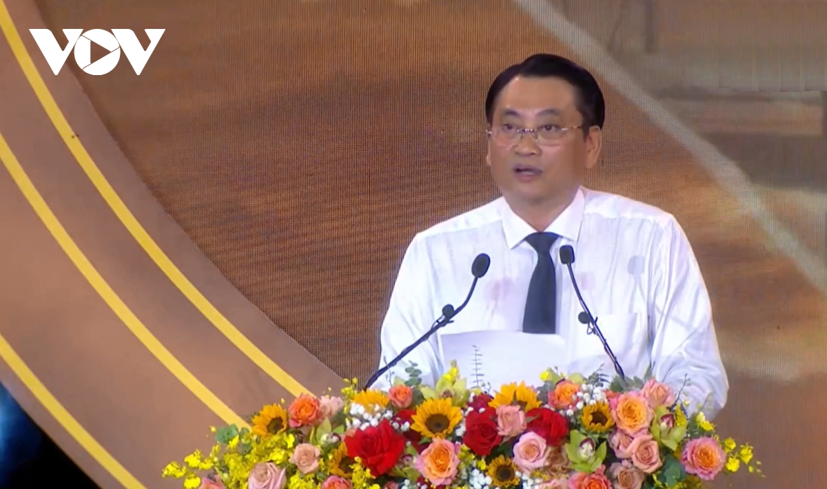 Ông Nguyễn Huỳnh Thiện, Phó chủ tịch UBND tỉnh Vĩnh Long phát biểu khai mạc Tuần lễ Văn hóa, Thể thao và Du lịch chào mừng Lễ hội Ok Om Bok năm 2025.