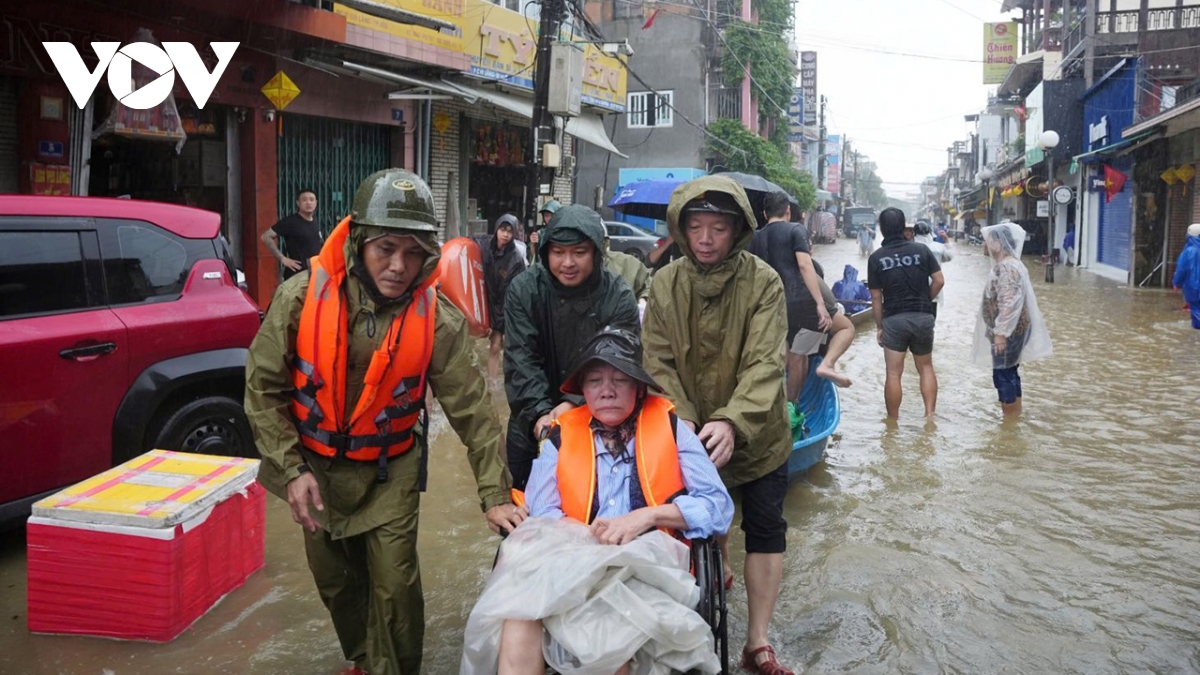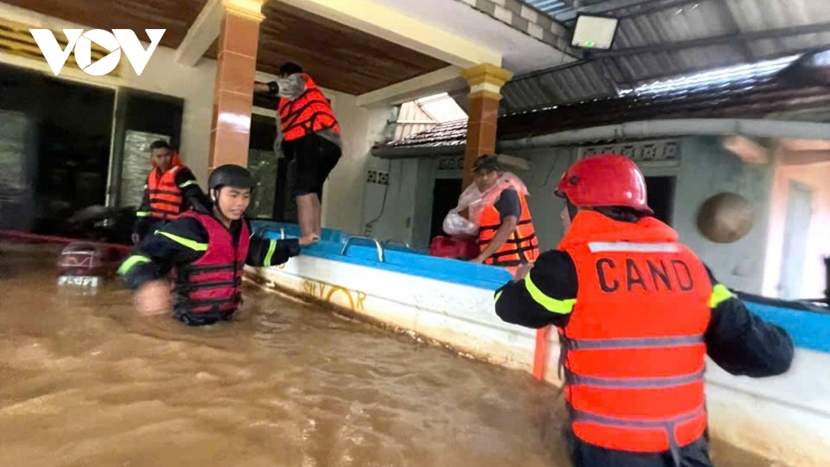 Hiện mực nước ở sông Bồ, sông Hương và các sông trên địa bàn thành phố đang dâng cao, tiếp tục gây ngập trên diện rộng. Lực lượng quân đội, công an được huy động khoảng 6.000 người tiếp tục hỗ trợ di dân ở những địa phương thấp trũng, ngập sâu.