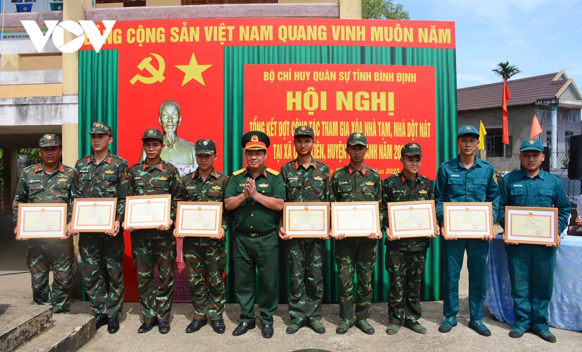 Trung sĩ Phạm Văn Chính, chiến sĩ thuộc Trung đoàn 739, Bộ Chỉ huy Quân sự tỉnh Bình Định cảm thấy vui vì đã đóng góp một phần công sức đem lại niềm vui cho bà con: “Khi được phân công xóa nhà tạm, nhà dột nát cho bà con thì chúng tôi làm từ công đoạn đầu tiên đến hoàn chỉnh căn nhà với một quyết tâm cao hoàn thành căn nhà tốt nhất có thể. Trong những ngày tham gia xóa nhà tạm, nhà dột nát thì lúc nào bà con cần thì chúng tôi đều có mặt. Bà con có căn nhà hoàn chỉnh, mùa mưa, mùa nắng có chỗ ở ấm áp”.