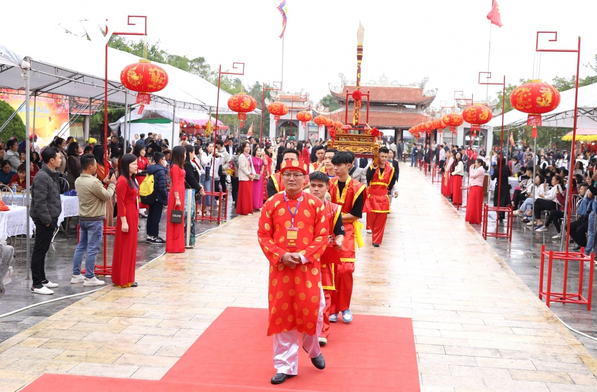 Màn rước bút trang nghiêm từ Văn Miếu Xuân La (xã Thanh Sơn, huyện Kiến Thụy, Hải Phòng) mở đầu chương trình Lễ hội khai bút đầu Xuân Giáp Thìn 2024 tại Khu tưởng niệm Vương triều Mạc. Tiếp đó là nghi thức an vị bút, tấu trình chúc văn khai bút và đánh trống khai hội.