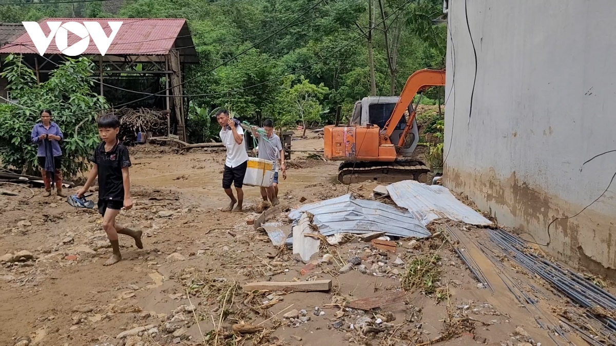 “Như ở thôn này thì nhà nào sẽ phải lo dọn nhà mình trước nên với 2 đám ở trong thôn nhờ 2 thôn bên cạnh là Cốc Coọng và Nà Cà để hỗ trợ lo cho 2 đám. Còn bà con ở đây thì giúp nhau lo dọn nhà cửa, bùn đất, như khu này hôm nay cùng nấu cơm có gì ăn nấy, cùng ăn, ở với nhau”, bà Miền nói.