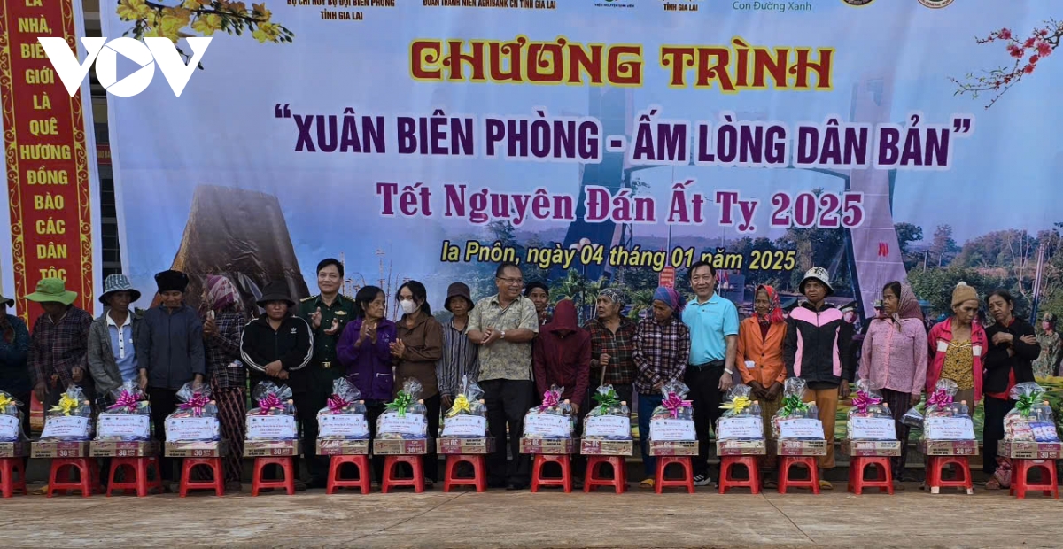 Những ngày đầu năm 2025, lực lượng bộ đội biên phòng tỉnh Gia Lai triển khai chương trình “Xuân Biên phòng ấm lòng dân bản” lần lượt tại xã biên giới các huyện Ia Grai, Đức Cơ, Chư Prông, tỉnh Gia Lai. Chương trình là dịp để các chiến sỹ bộ đội biên phòng đứng chân trên địa bàn cùng nhân dân địa phương gói bánh chưng, diễn tấu cồng chiêng, giao lưu gắn kết tình cảm quân-dân. Các nhà hảo tâm tổ chức "gian hàng 0 đồng", qua đó, trao tặng bà con hàng trăm phần quà gồm chăn, màn, gạo… tổ chức khám bệnh, cấp phát thuốc miễn phí cho bà con.