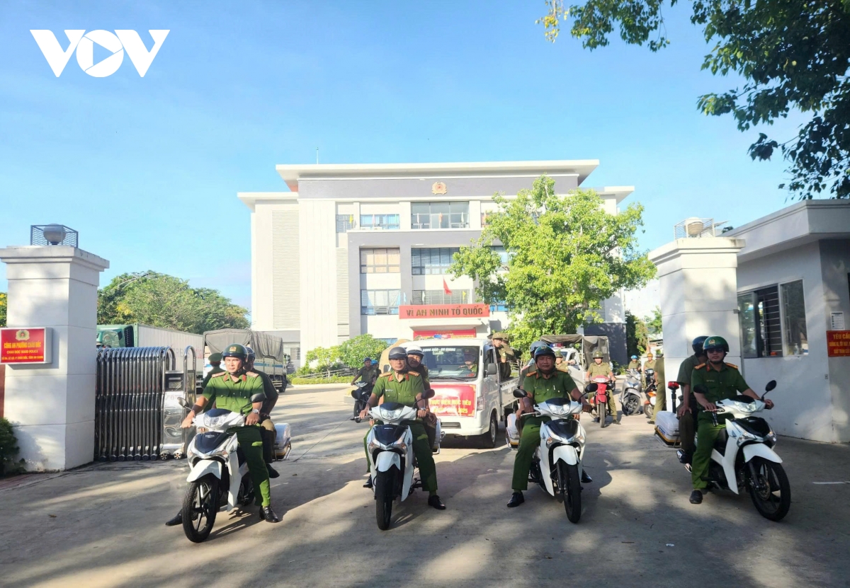 Lực lượng Công an An Giang tổ chức diễu hành tuyên truyền trên một số tuyến đường chính.