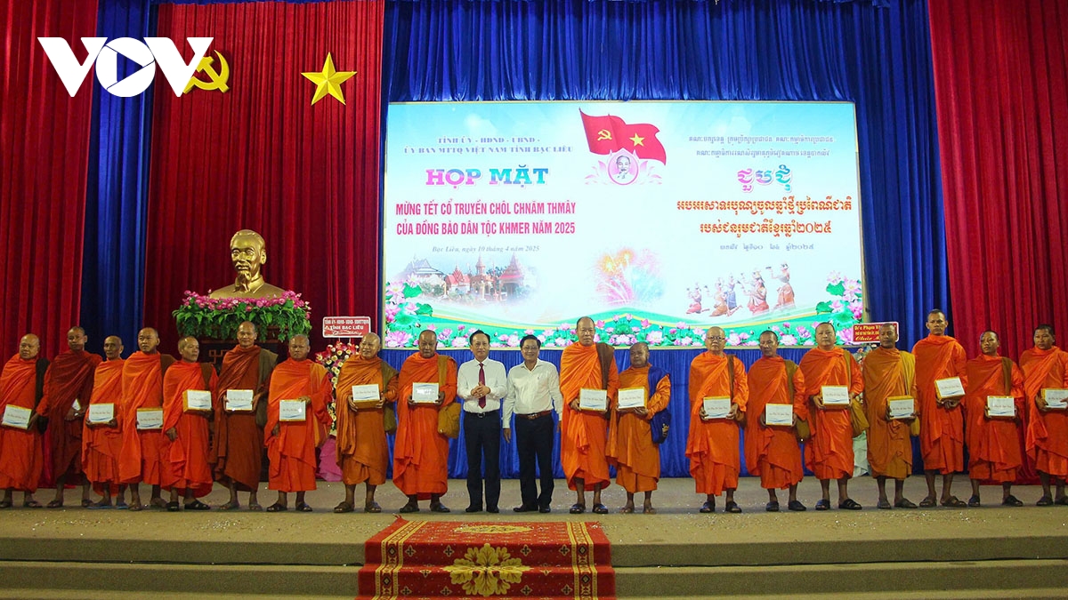 Dịp này, lãnh đạo tỉnh Bạc Liêu đã tặng quà đến 22 vị sư trụ trì chùa Phật giáo Nam tông và trao học bổng cho 20 học sinh, sinh viên người dân tộc Khmer có thành tích học tập xuất sắc trong học kỳ I năm học 2024- 2025.