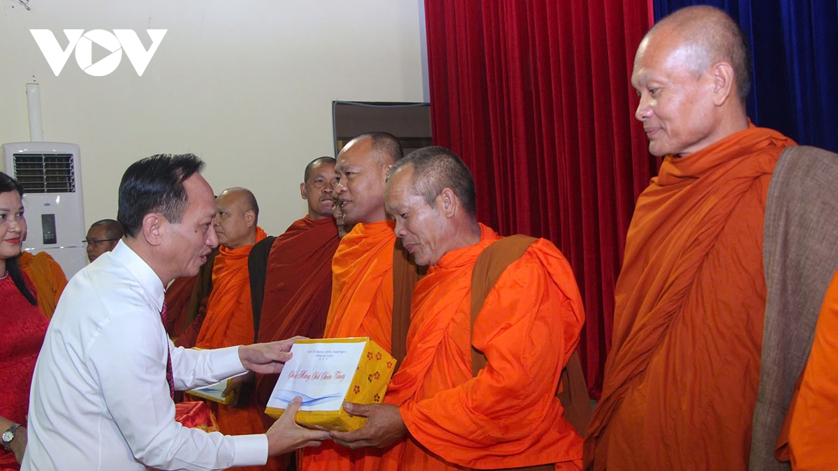 Lãnh đạo tỉnh Bạc Liêu tặng quà đến các vị sư trụ trì chùa Phật giáo Nam tông