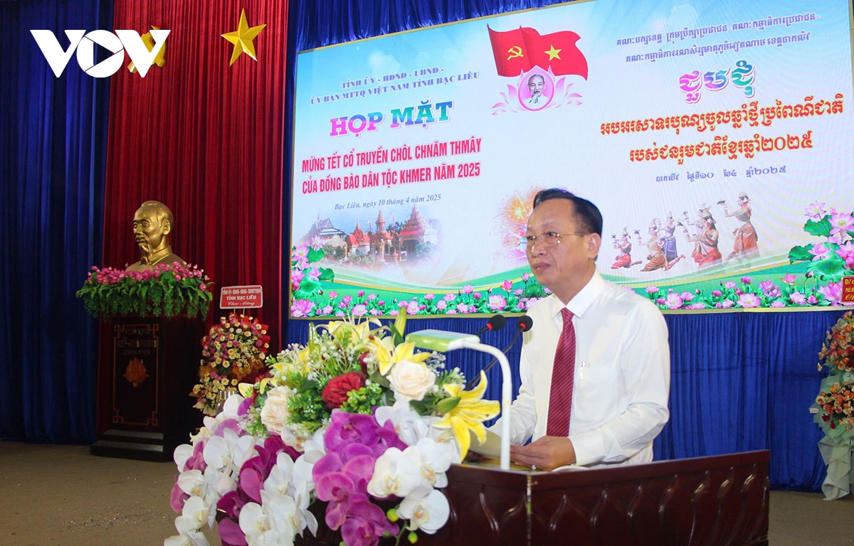 Chủ tịch UBND tỉnh Bạc Liêu nhấn mạnh, trong niềm hân hoan, phấn khởi vui mừng đón Tết cổ truyền Chôl Chnăm Thmây của đồng bào Khmer trong tỉnh, Tỉnh ủy, HĐND, UBND, Ủy ban MTTQ Việt Nam tỉnh tin tưởng và mong rằng các vị sư sãi, cán bộ, chiến sĩ và đồng bào Khmer tiếp tục phát huy truyền thống đại đoàn kết, thực hiện tốt các chủ trương, chính sách của Đảng, pháp luật của Nhà nước; nâng cao tinh thần tự lực, vượt khó vươn lên, tích cực tham gia các phong trào thi đua yêu nước, xây dựng nông thôn mới, đô thị văn minh; ra sức giữ gìn và phát huy bản sắc văn hóa dân tộc, làm cho đời sống văn hóa, tinh thần của đồng bào ngày càng phong phú...