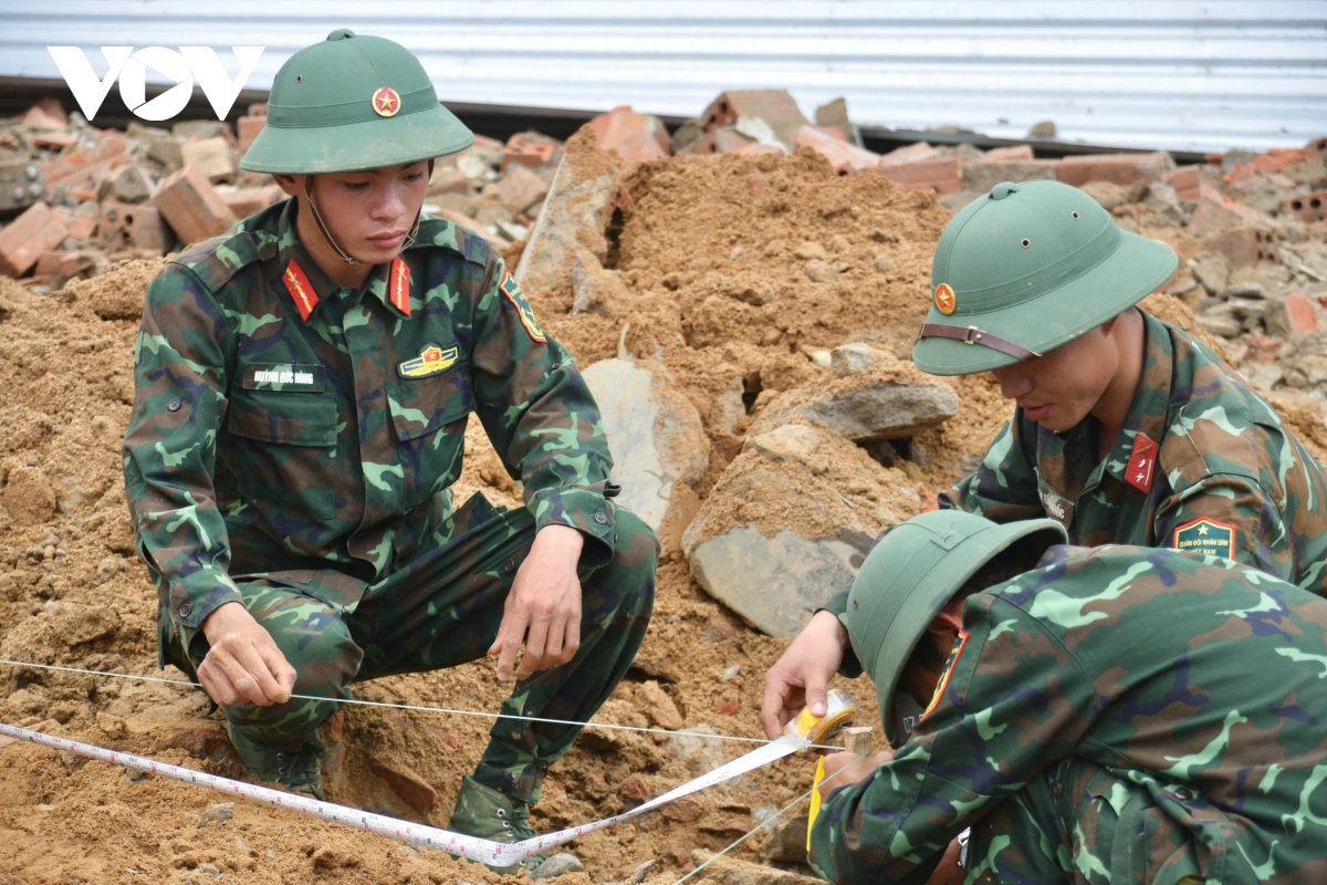 Trên các công trường dã chiến, bộ đội, công an và các lực lượng chức năng không chỉ bảo đảm tiến độ thần tốc mà các yêu cầu kỹ thuật cũng được đặt lên hàng đầu, đặc biệt ở khâu móng và khung nhà. Móng được đào sâu, xử lý nền kỹ, đổ bê tông đúng quy trình.