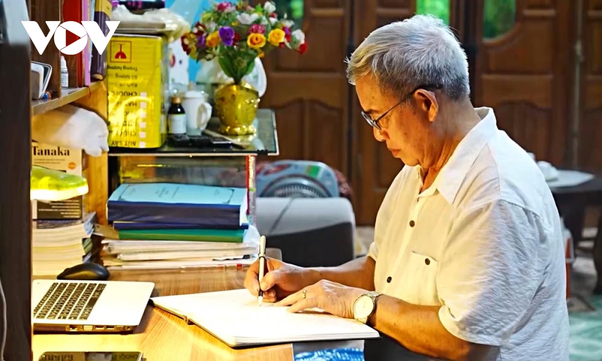 Nhà nghiên cứu văn hóa dân gian Điêu Văn Thuyển đang ngày đêm tích cực truyền dạy văn hóa Thái cho các thế hệ trẻ quê mình