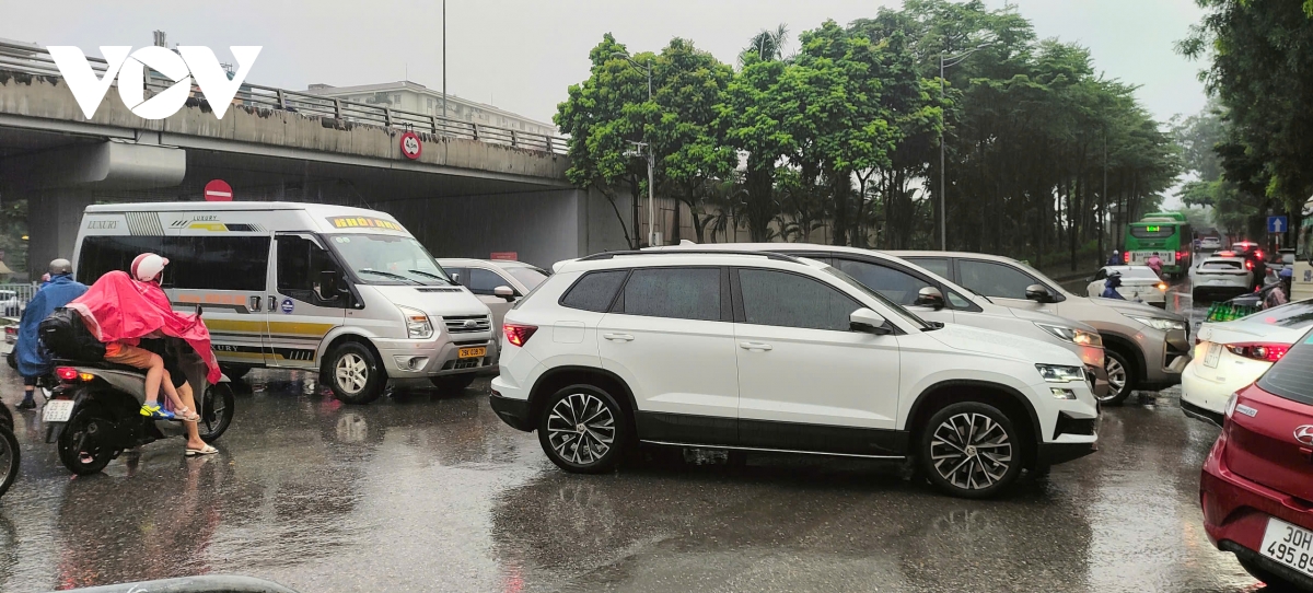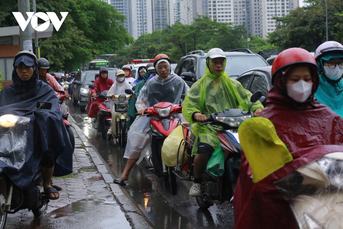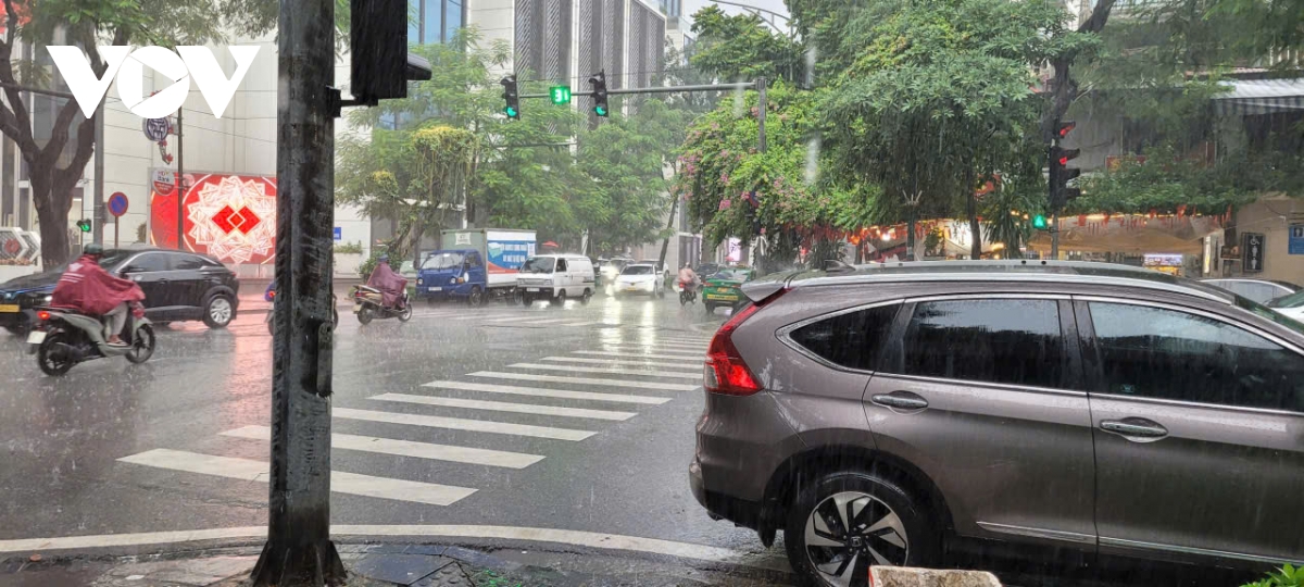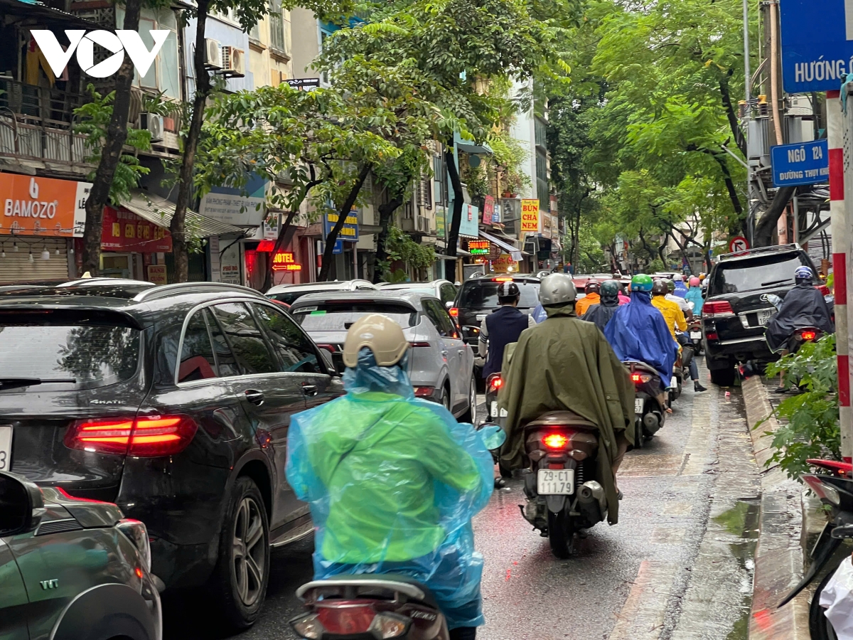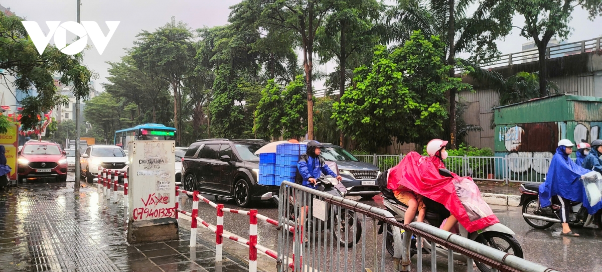 Ghi nhận của phóng viên Chung Thủy/VOV.VN tại Hà Nội, hiện tại, mưa tại khu vực Hà Nội đã bắt đầu nặng hạt hơn kèm theo gió mạnh, gây ảnh hưởng đáng kể đến tình hình giao thông.