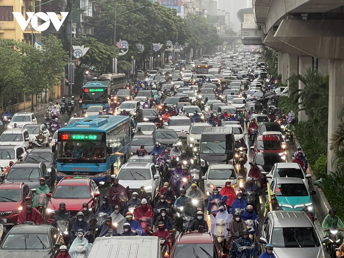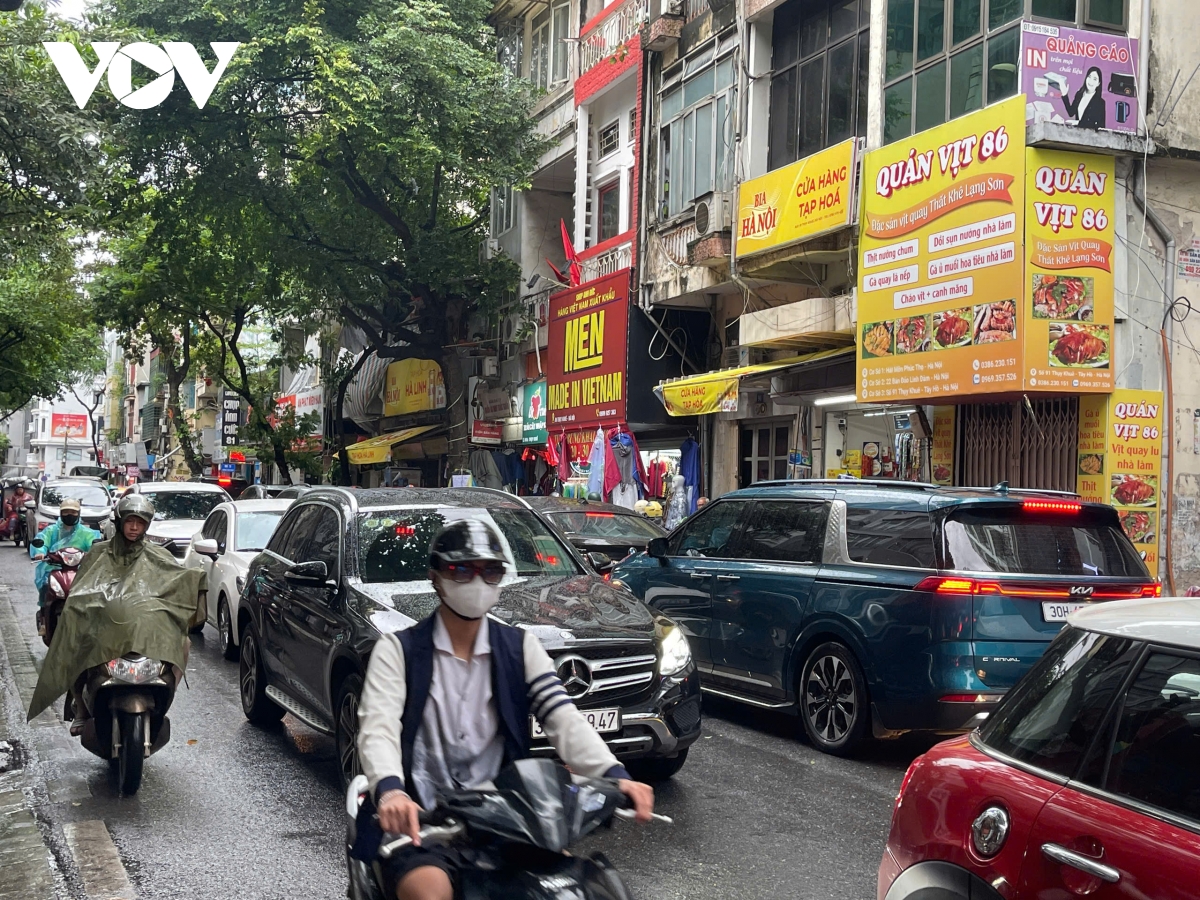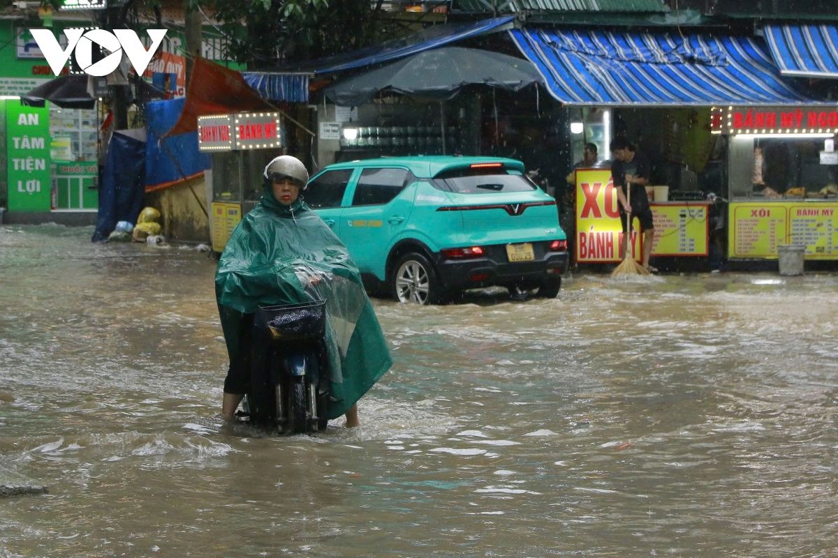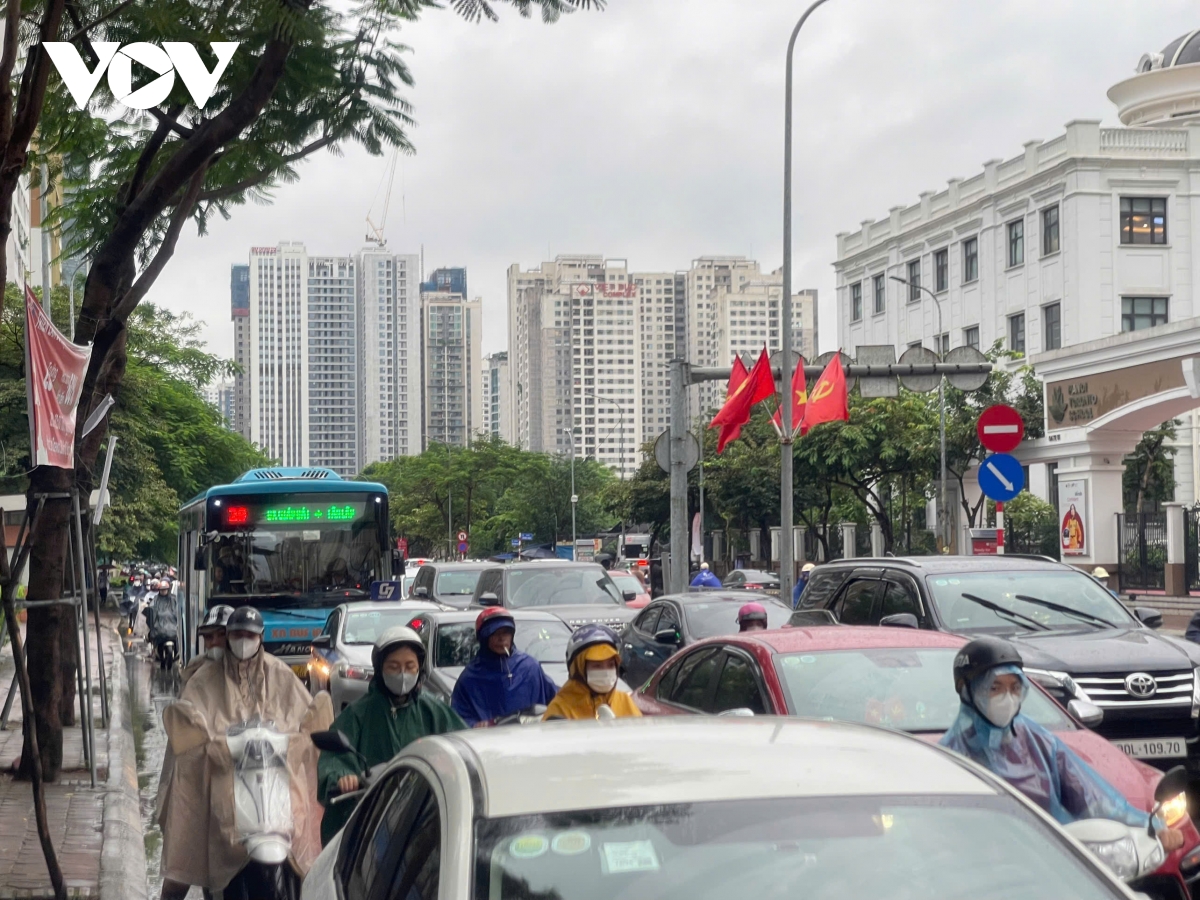 Ghi nhận của phóng viên Chung Thủy/VOV.VN tại Hà Nội, hiện tại, mưa tại khu vực Hà Nội đã bắt đầu nặng hạt hơn kèm theo gió mạnh, gây ảnh hưởng đáng kể đến tình hình giao thông.