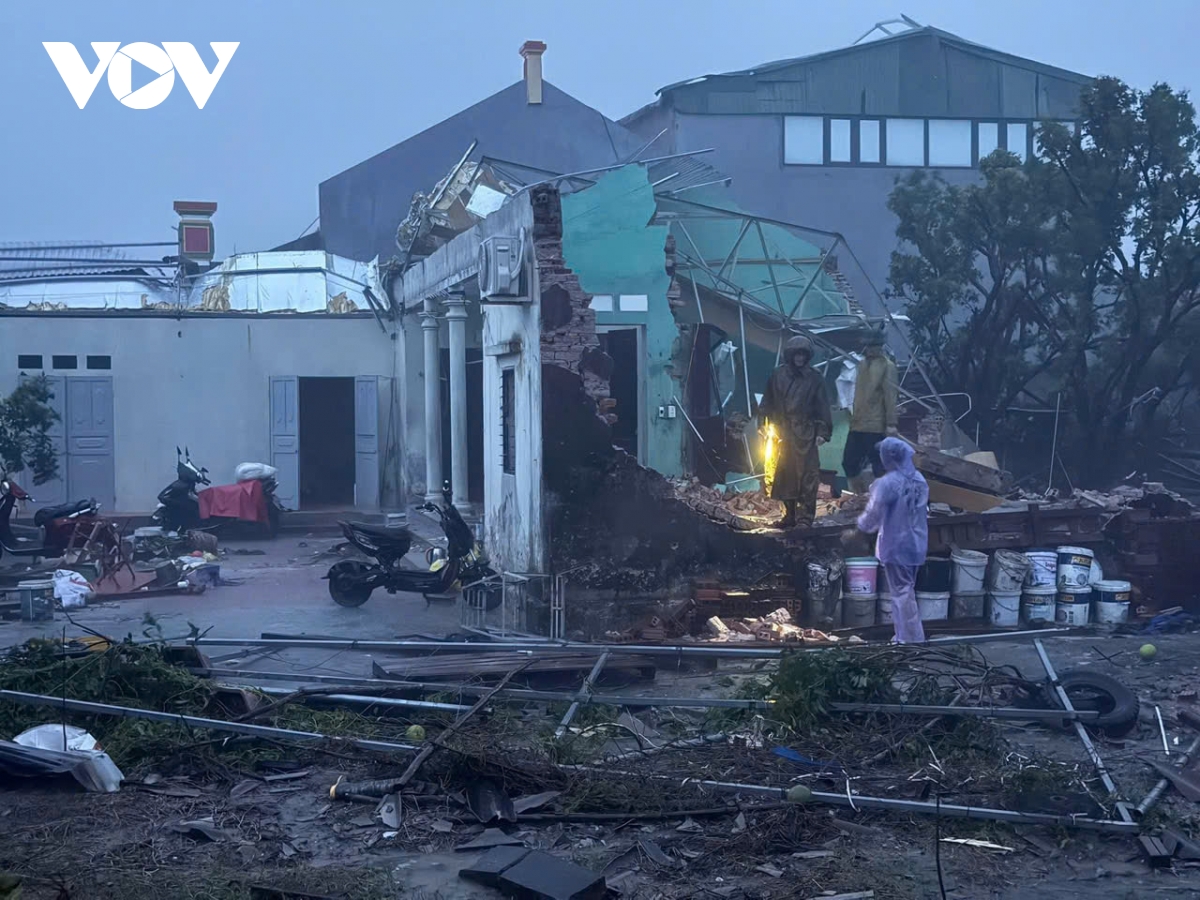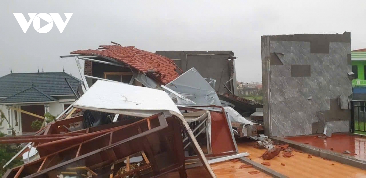 PV Ngọc Hoà/VOV.VN thông tin, do ảnh hưởng của bão số 10 (Bualoi), trưa 29/9, trên địa bàn xã Thái Thụy, tỉnh Hưng Yên xuất hiện dông lốc mạnh gây tốc mái nhà cửa, khiến nhiều người trên địa bàn thương vong.
