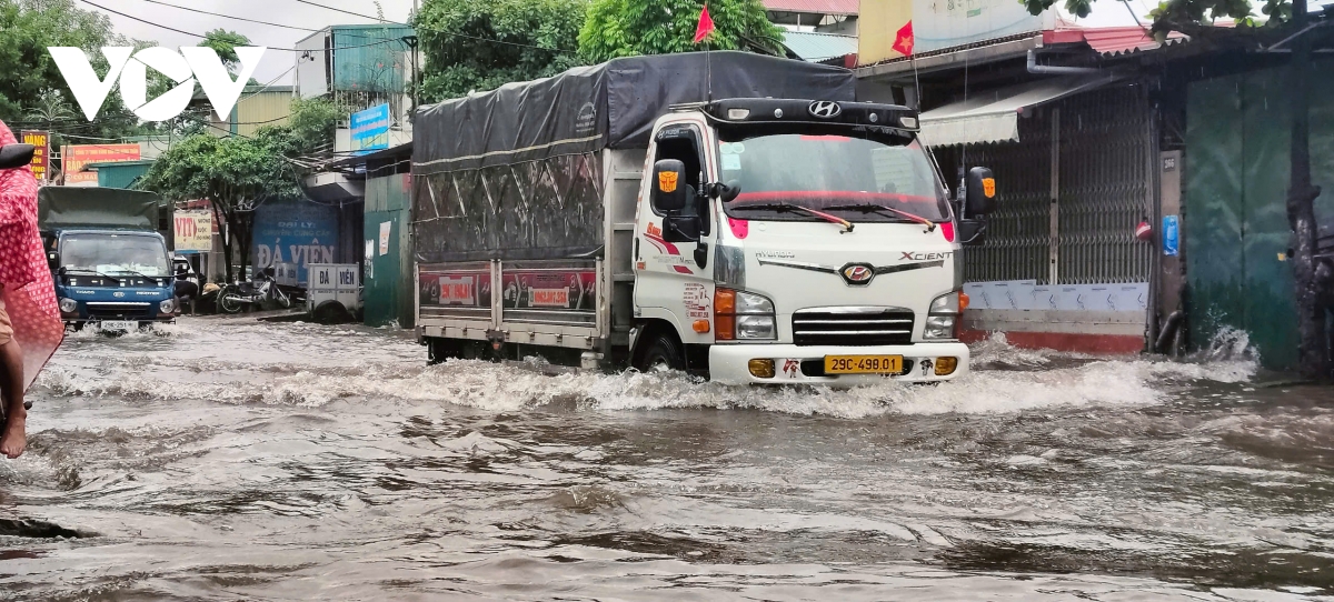 PV Chung Thủy/VOV.VN đưa tin, trận mưa lớn kéo dài hơn một giờ đồng hồ vào trưa nay (29/9) đã khiến một số tuyến đường trên địa bàn Thủ đô rơi vào tình trạng ngập úng cục bộ. Ghi nhận tại phố Thụy Khuê, một đoạn đường dài đã bị ngập nước. Tuy nhiên, mực nước không quá cao, chỉ gây ảnh hưởng nhẹ đến việc lưu thông của các phương tiện. Do thời điểm mưa chưa trùng với giờ cao điểm nên các phương tiện vẫn có thể di chuyển tương đối dễ dàng. Giao thông không xảy ra tình trạng ùn tắc nghiêm trọng.